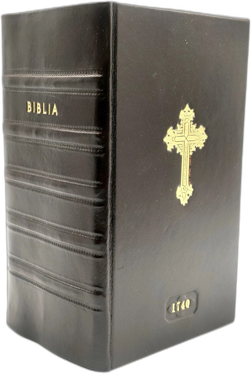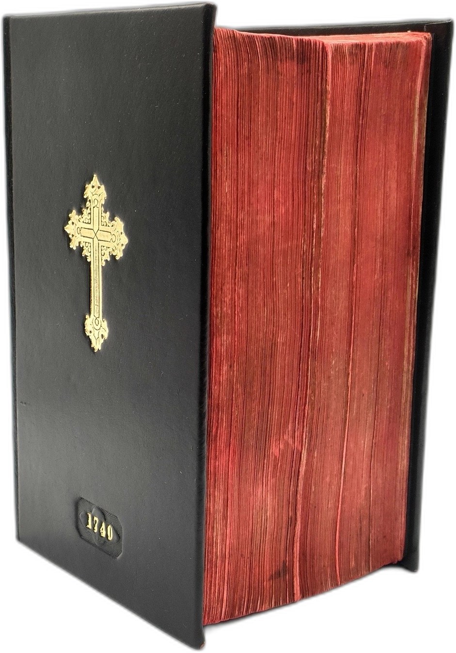 Oprawa twarda, współczesna, pełna skóra z złoconym krzyżem oraz datą wydania na przednim licu okładki oraz złoconą tytulaturą na grzbiecie.