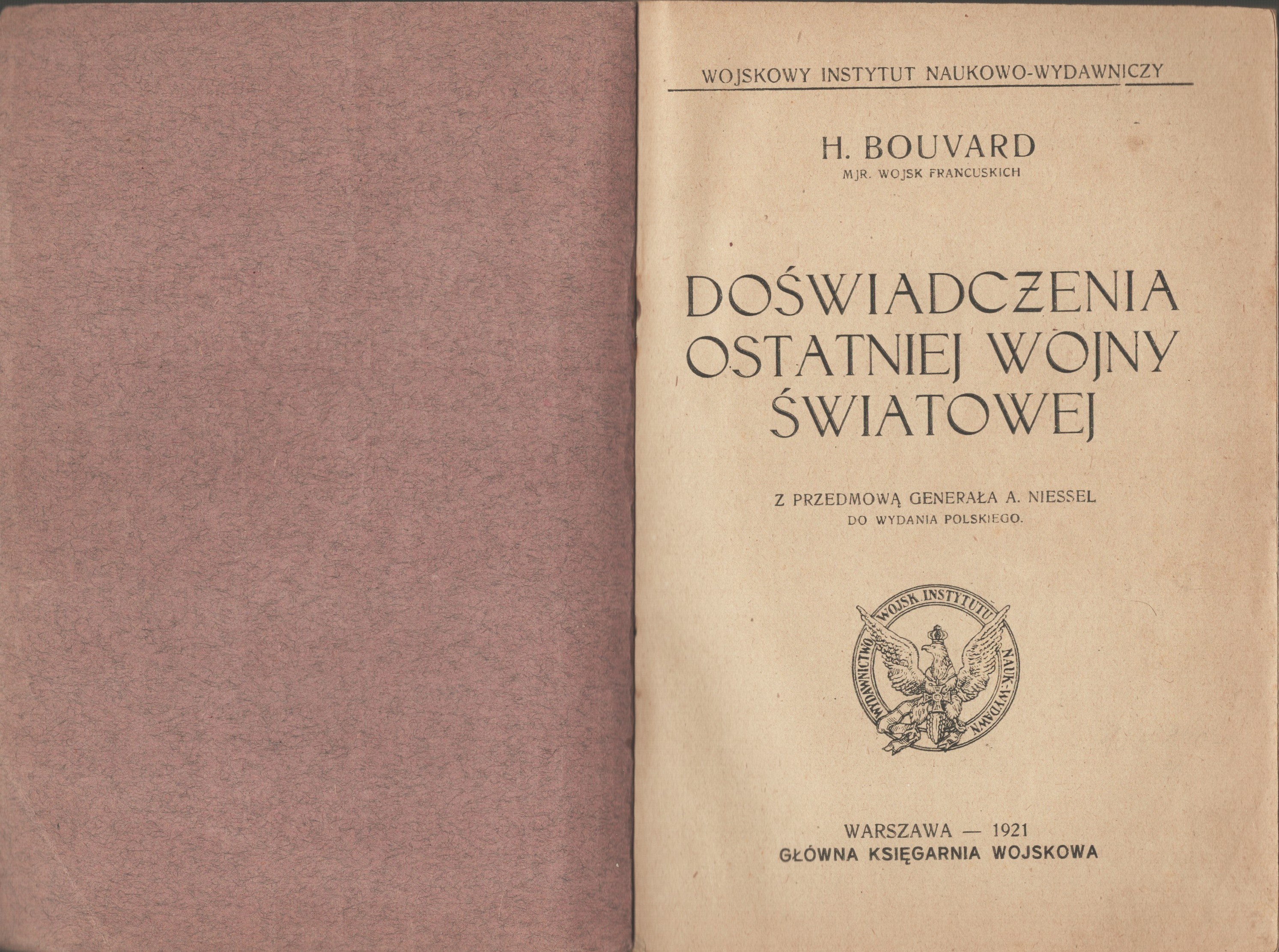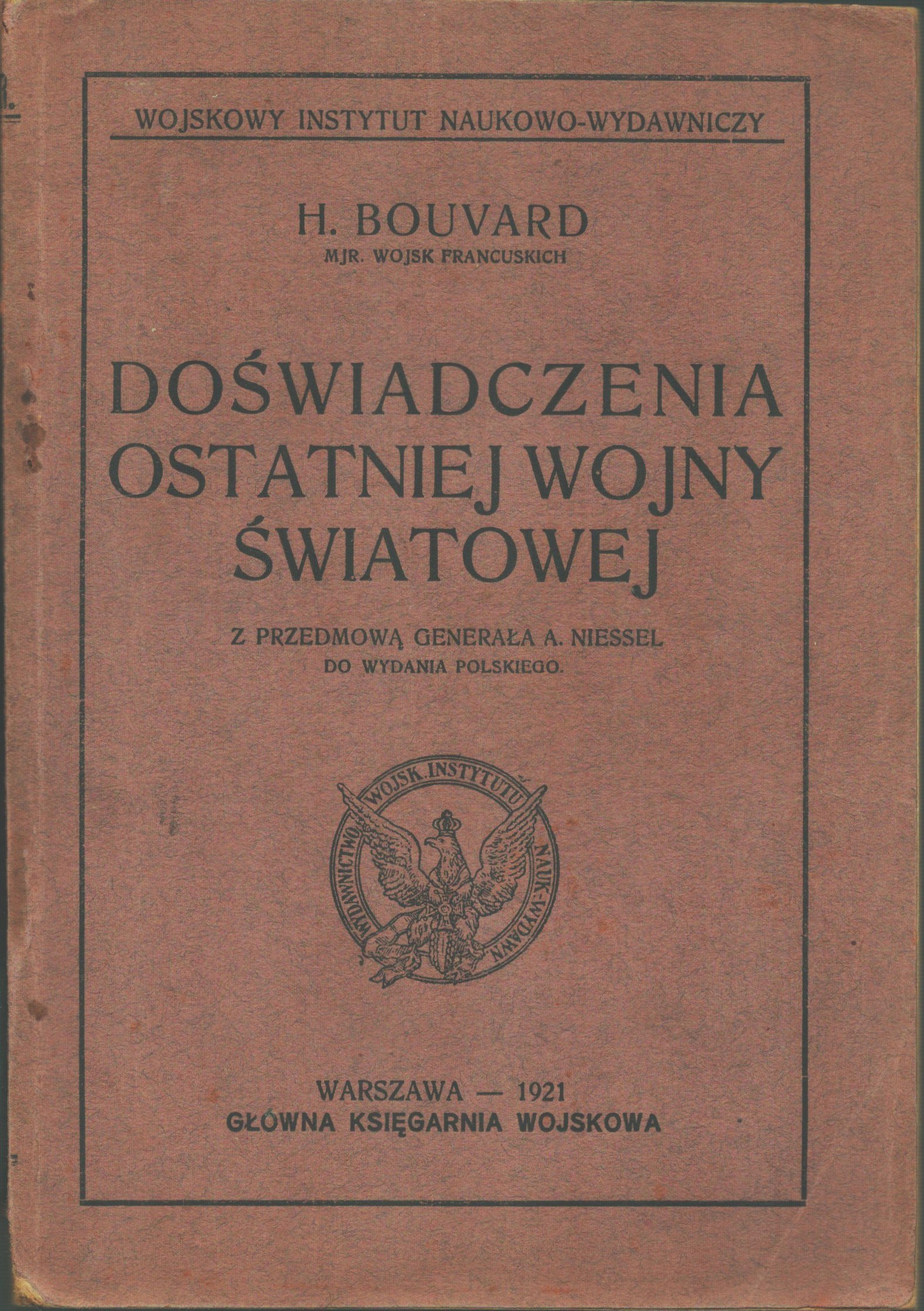 BOUVARD Henri mjr. wojsk francuskich - Doświadczenia ostatniej wojny światowej. Z przedmową generała A. Niessel do wydania polskiego. Warszawa 1921. Wojskowy Instytut Naukowo-Wydawniczy.