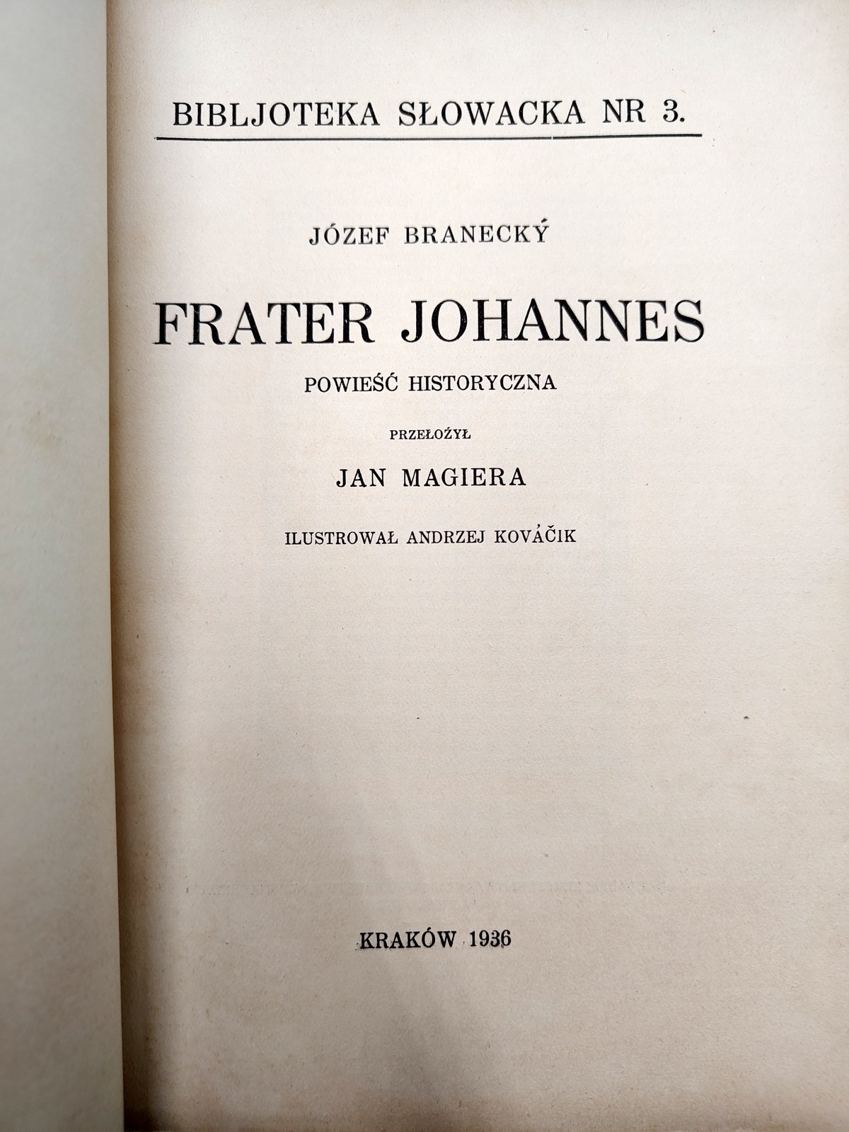 Branecky Józef - Frater Johannes - Kraków 1936 [ wyd. w j. polskim i słowackim z dedykacja i autograf autora ]