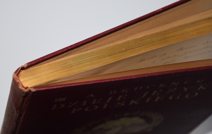 - Oprawa: twarda płócienna z złoceniami na licu i grzbiecie, złocony górny brzeg kart