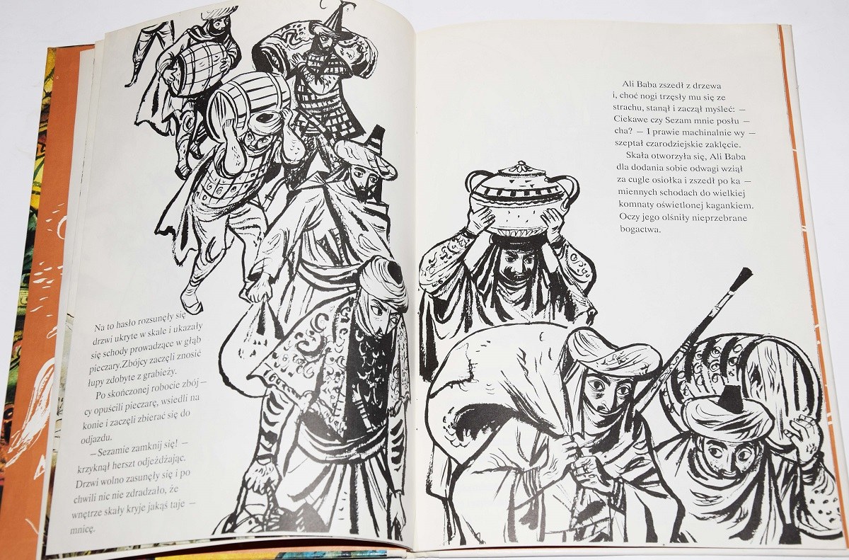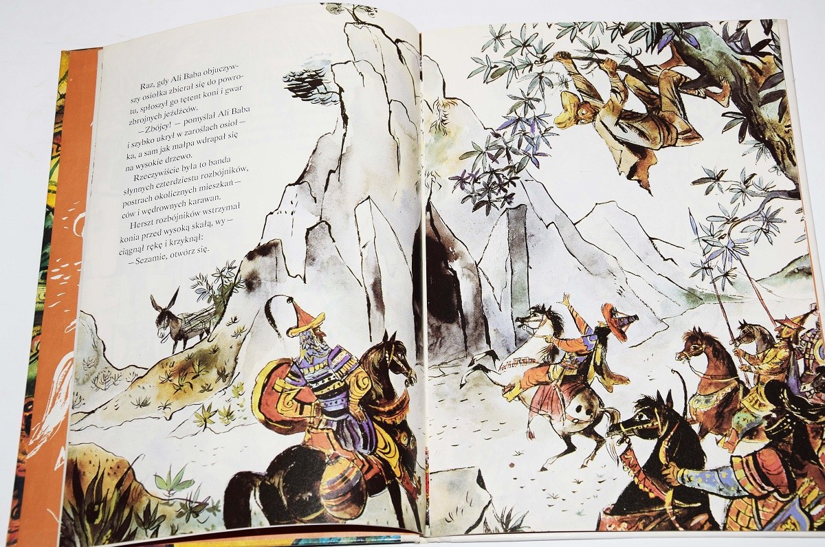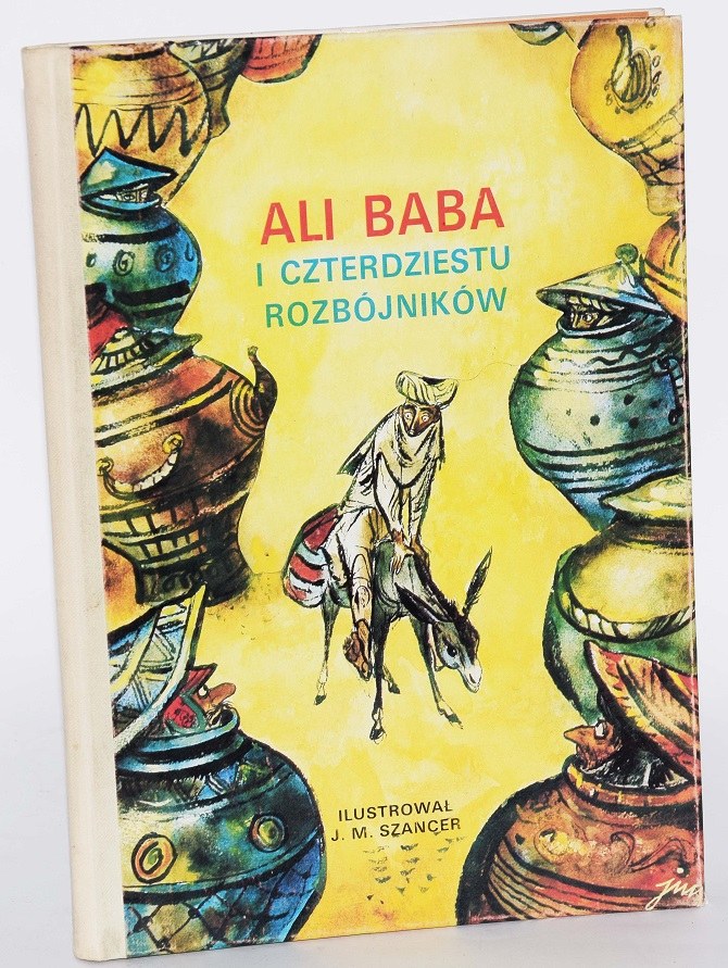 ALI BABA I CZTERDZIESTU ROZBÓJNIKÓW [wg baśni Grimma]. Ilustrował J.M. Szancer. GMP OFICYNA WYDAWNICZA, POZNAŃ 1991r., str. 18; 24,5cm. Jan Marcin Szancer ambasador wyobraźni, poz. 117. OPRAWA TWARDA PÓŁ-PŁÓCIENNA, OZDOBNE WYKLEJKI. STAN Bardzo dobry-