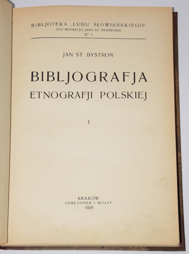 Tytuł: Bibljografja etnografji polskiej, t. 1 [tyko tyle wydano]
