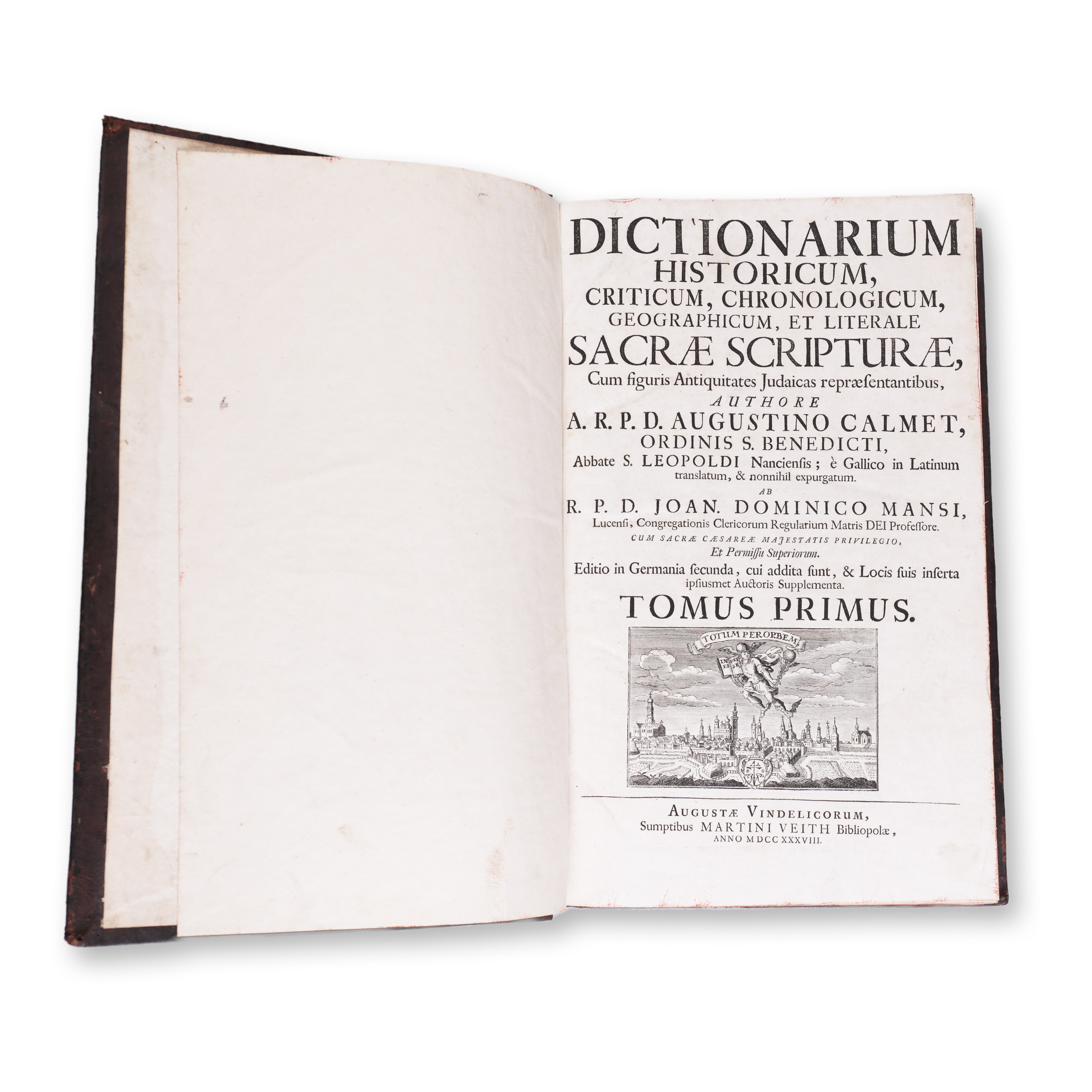 Dictionarium historicum, criticum, chronologicum, geographicum et literale Sacrae Scripturae: cum figuris antiquitates judaicas repraesentantibus. Tomus primus Bidders are asked to inquire about the condition of the item before the auction. any complaints will not be taken into account.