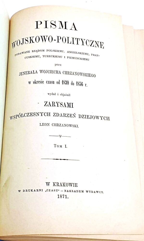 Nie polecił mnie wprawdzie jenerał Chranowski wydania swoich pism wojskowo - politycznych, nieznanych dotychczas publiczności , ani nie przygotował ich do druku, a pozostawił je tylko - jak wspomniałem - w brulionowych rękopismach, niektóre nawet Jedynie w zapiskach, między papierami i książkami mnie przekazanemi. Jednak tuszę sobie, iż użyteczną dla kraju pracę spełniłem, gdy przygotowałem do druku, objaśniłem opowiedzeniem współczesnych wypadków historycznych i ogłaszam te memoryały, sprawozdania i rozprawy jenerała, z których każda ma pewną wartość historyczną, a większa część posiada także jeszcze teraz polityczną lub wojskową ważność, gdyż nie zmieniło się w ogólnych rysach położenie spraw, których się tyczyły. Mniemam nawet, że dzisiaj po wyjaśnieniu przez późniejsze wypadki opinii narodów względem wielu spraw, a szczególniej