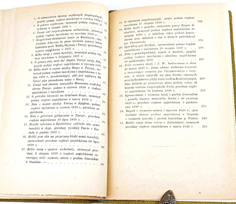 Winienem tu dodać, że z wielu raportów, korespondencyj l memoryałów przedstawionych rządom mocarstw zachodnich lub tureckiemu, pozostał tylko ślad w papierach a osnowa zaginęła, niektóre nawet zginęły bez śladu . Przeto nie mogę ich ogłosić, a tylko w objaśnieniach lub we wstępach , którymi każdy dział pism poprzedzam, wspomnę O tych zaginionych których ad znalazłem .