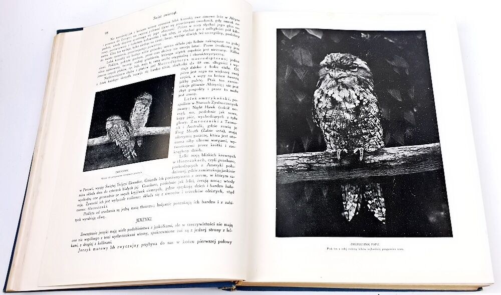 TWARDA OPRAWA WYDAWNICZA OZDOBNA ZE ZŁOCENIAMI, NA OBU LICACH TŁOCZONE SYLWETKI ZWIERZĄT OKOLONE ZŁOTYM SŁOŃCEM, NA TYLNYCH LICACH CENTRALNIE GŁĘBOKO TŁOCZONE GODŁO WYDAWNICTWA GEBETHNERA I WOLLFFA, PONIŻEJ ŚLEPY TŁOK" INTROLIGATORNIA J.F.P.U. PUGET I S-KA, WARSZAWA"