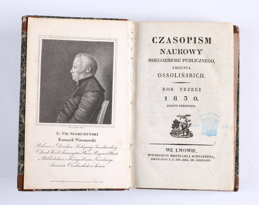 CZASOPISM NAUKOWY Księgozbioru Publicznego, Imienia Ossolińskich. Rok Trzeci 1830. Zeszyt Pierwszy [oraz] Zeszyt Wtóry. Lwów 1830. Wyciśnięto Krotłami J. Schnaydera [Biblioteka Zamku w Lesku hr. Krasickich]