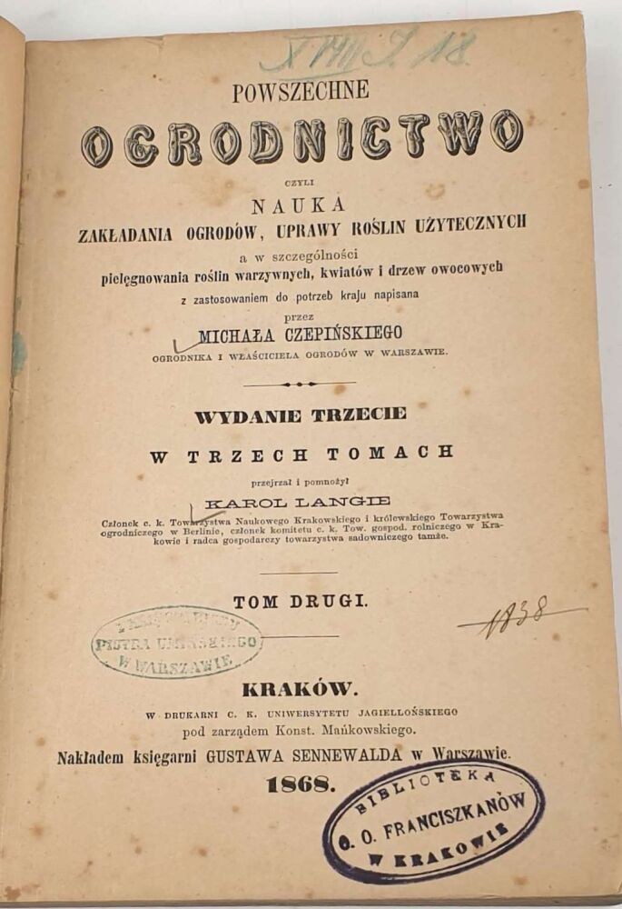 Kraków 1868, w Drukarni Uniw. Jagiellońskiego, Nakładem Księgarni Gustawa Sennewalda, str. 258 [X]; format 13,5x21 cm