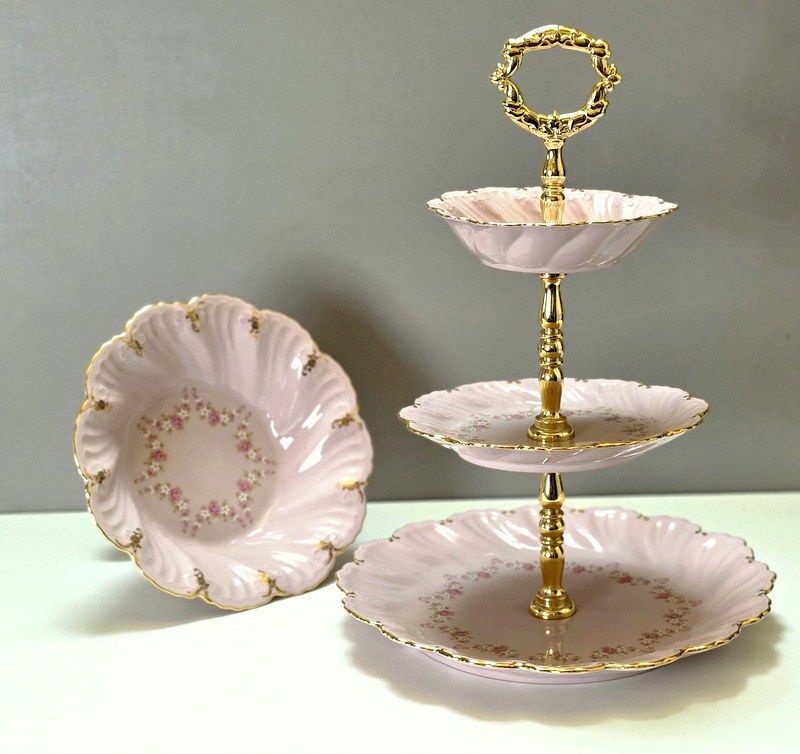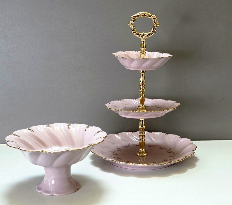 Patera trzypoziomowa na owoce lub ciasto , oraz patera na nóżce na ciastka