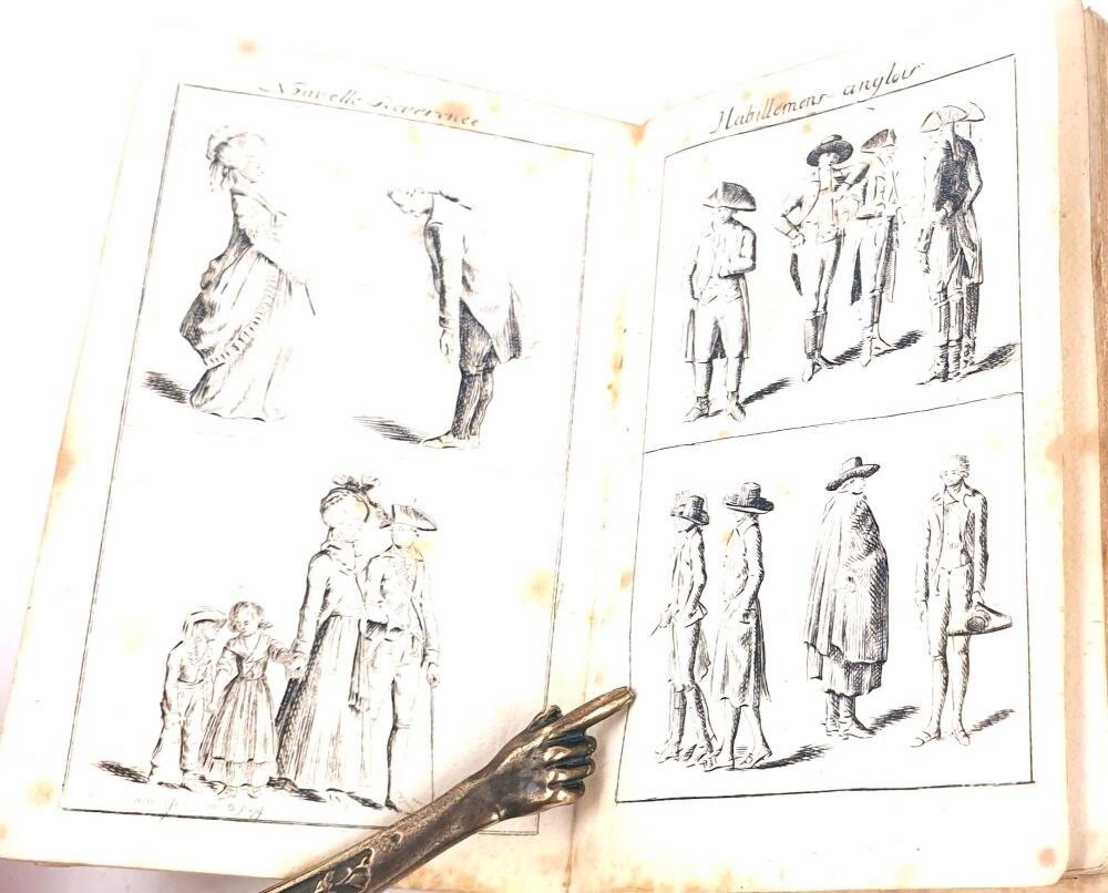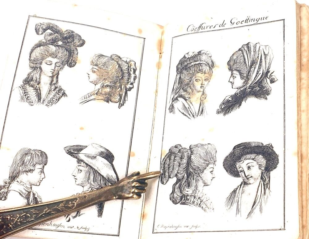 Rzadki Almanach Getyngi zawierajacy 15 tablic miedziorytniczych z typami ówczesnych mód i ubiorów autorstwa Daniela Chodowieckiego (ur. 16 października 1726 w Gdańsku, zm. 7 lutego 1801 w Berlinie) – polsko-niemieckiego malarza i rysownika. Do starodruku dołączono luzem 12 kolejnych plansz z pracami artysty [prawdopodobnie pochodzacych z innego kalendarzyka].