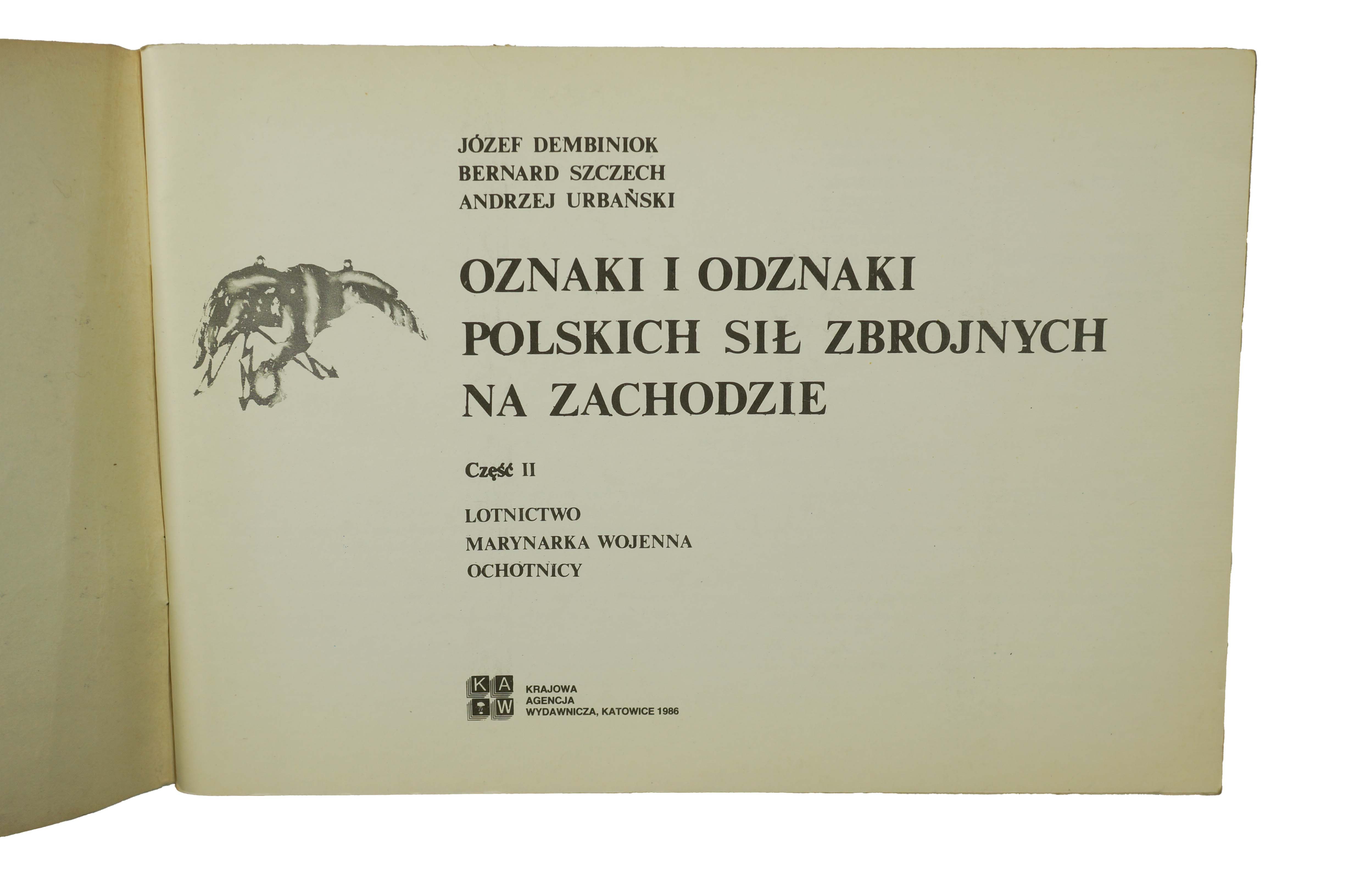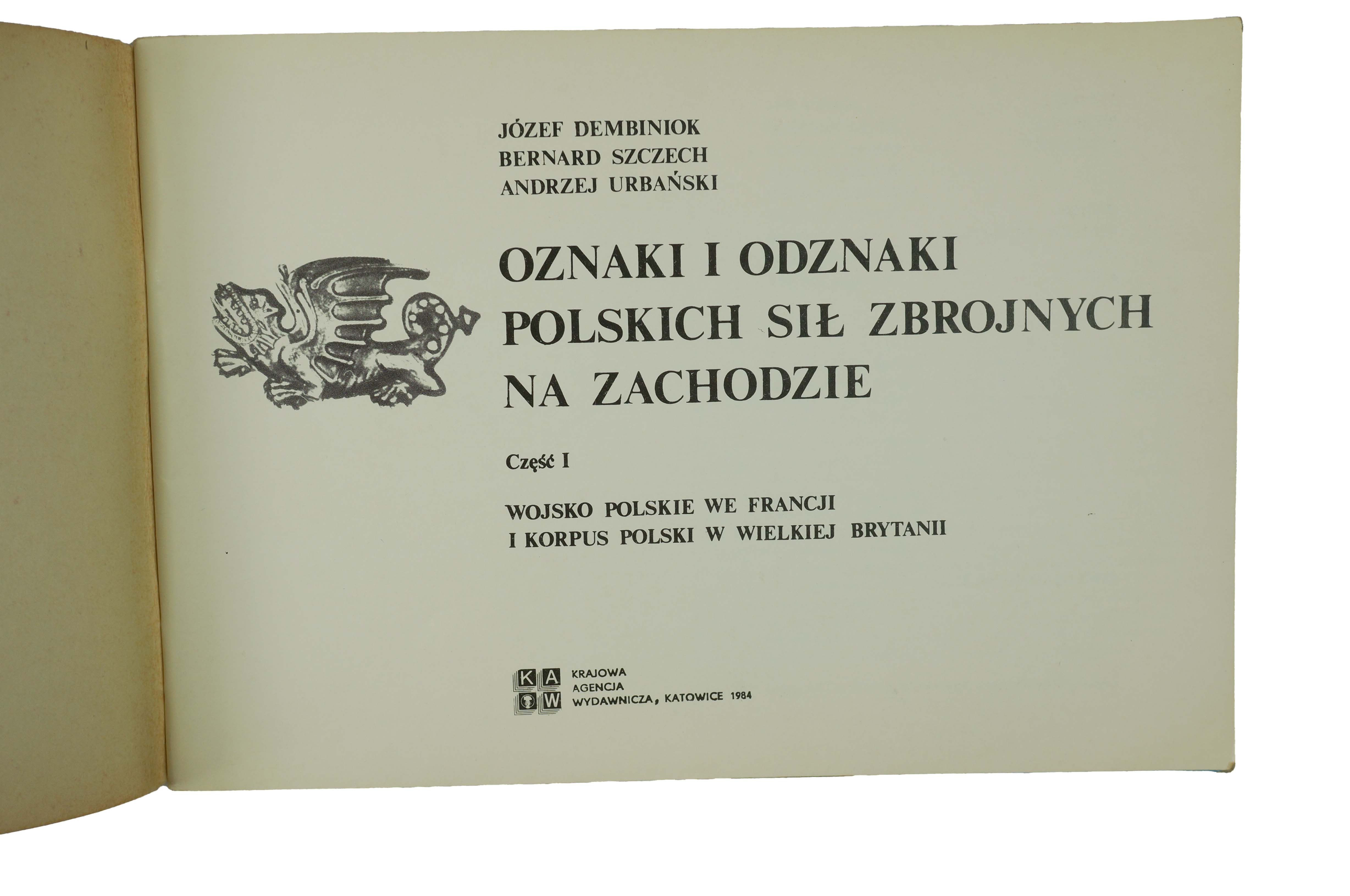 Oznaki i odznaki Polskich sił Zbrojnych na Zachodzie , część I-II - Józef Dembiniok, Bernard Szczech, Andrzej Urbański , Katowice 1984-86, f. 23x16cm, s. 50, [3], 61