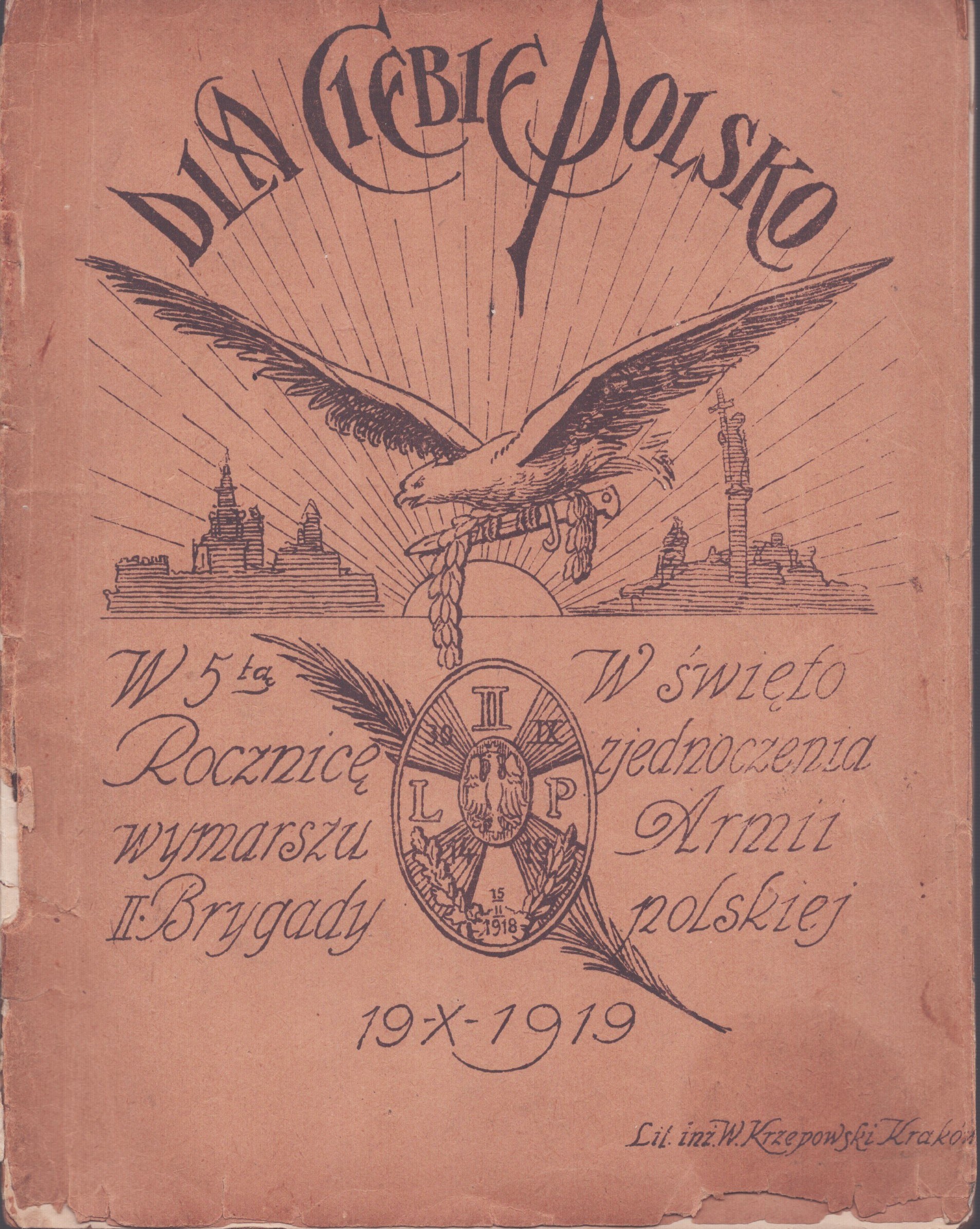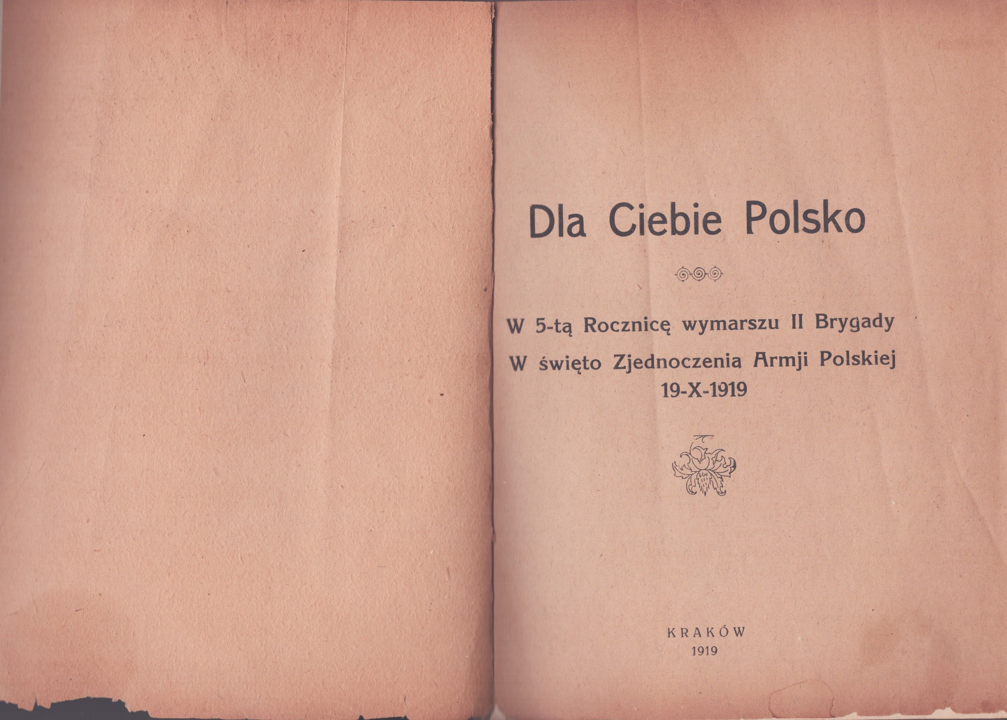Dla Ciebie Polsko. W 5-tą Rocznicę wymarszu II Brygady. W Święto zjednoczenia Armii Polskiej. Kraków, 19. X. 1919. Wyd. staraniem sekcji oświaty i prasy armji gen. Hallera pod red. ppor. R. Bergela.