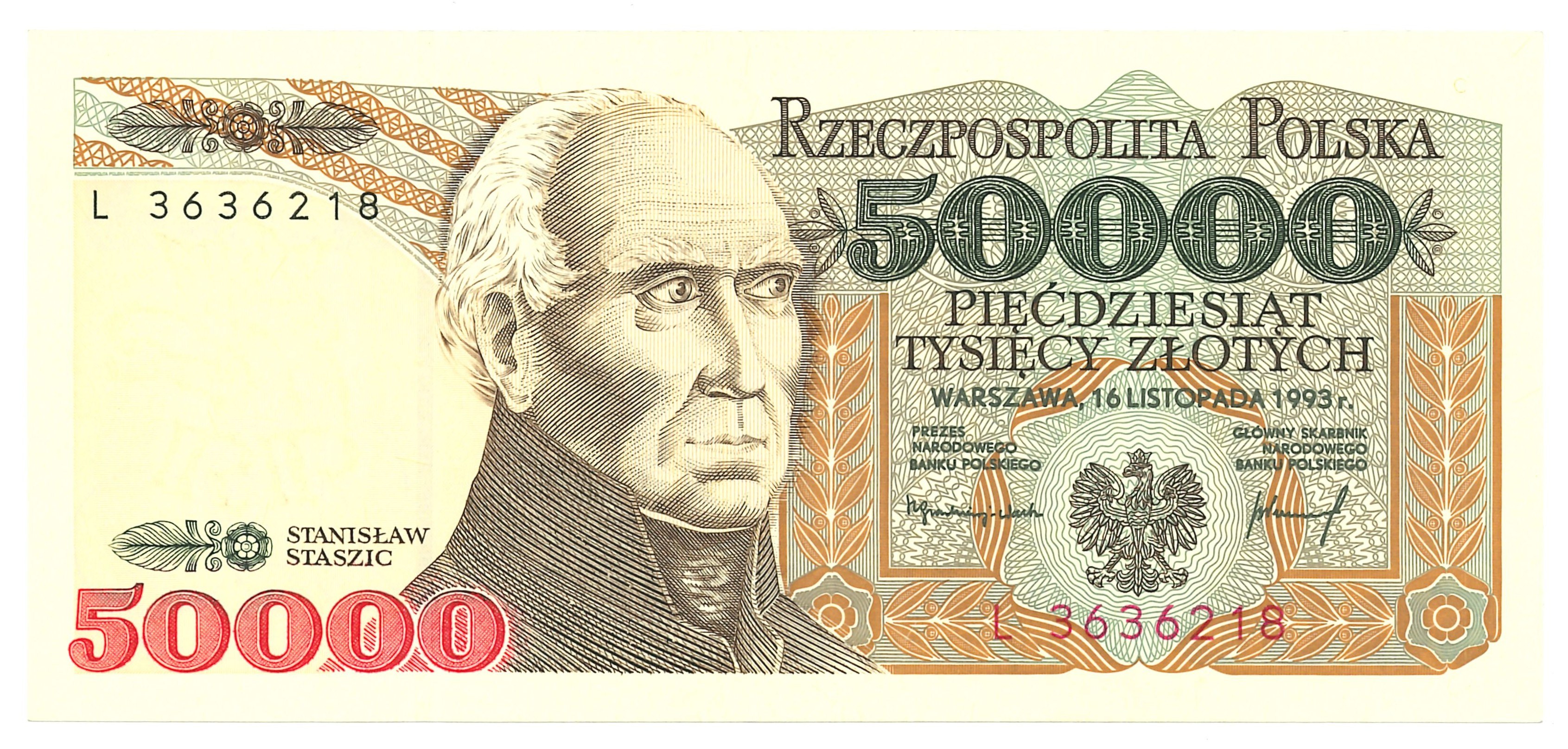 Banknot autorstwa Andrzeja Heidricha, znak wodny - w polu niezadrukowanym orzeł w koronie.