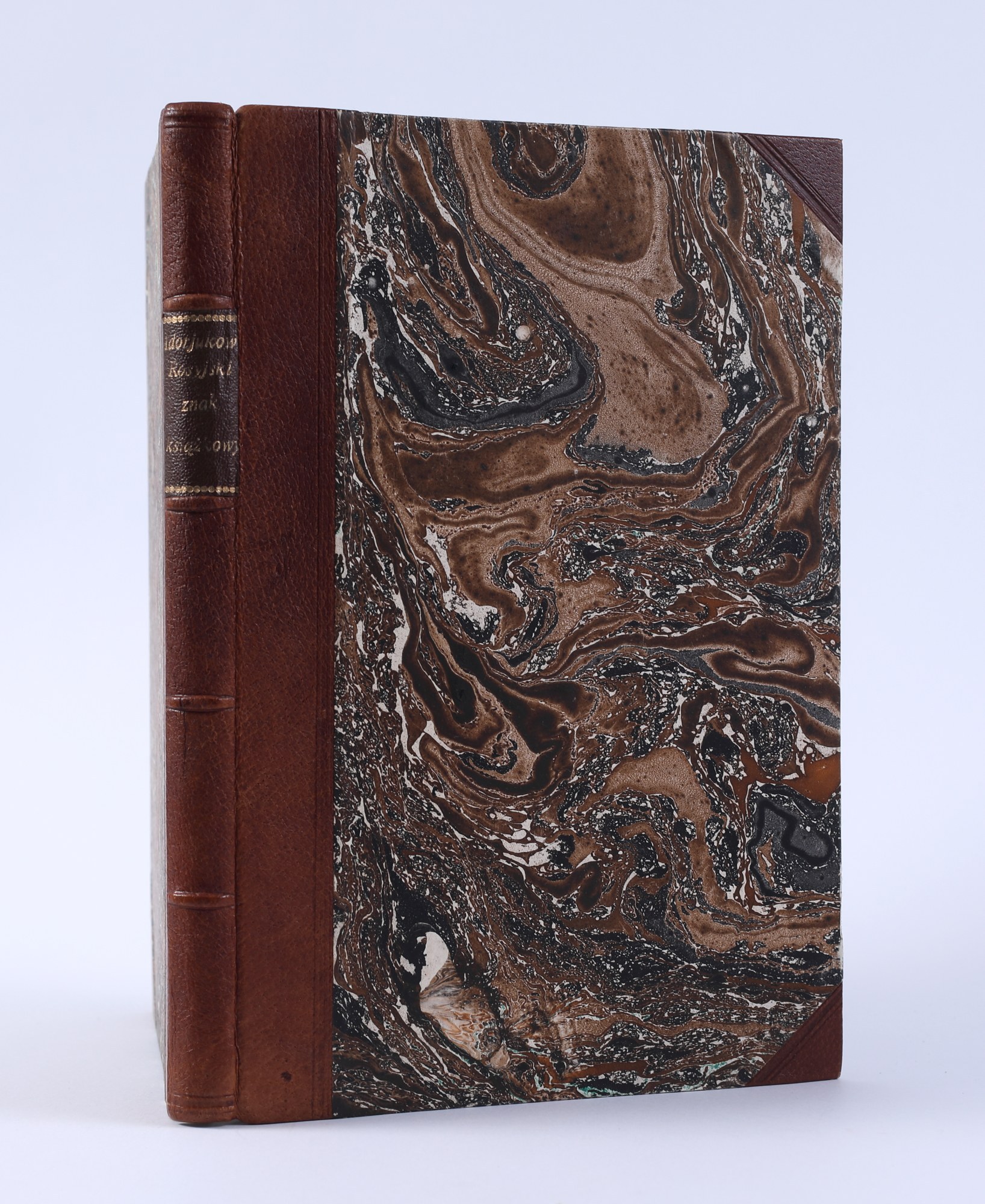 S. 90. Wys. 28,5 cm. Oprawa półskórek współczesny (skóra świńska). Grzbiet 5-polowy, na jednym z pól skórzany szyldzik ze złoconymi napisami. Skórzane naroża. Zach. oryg. okł. brosz.