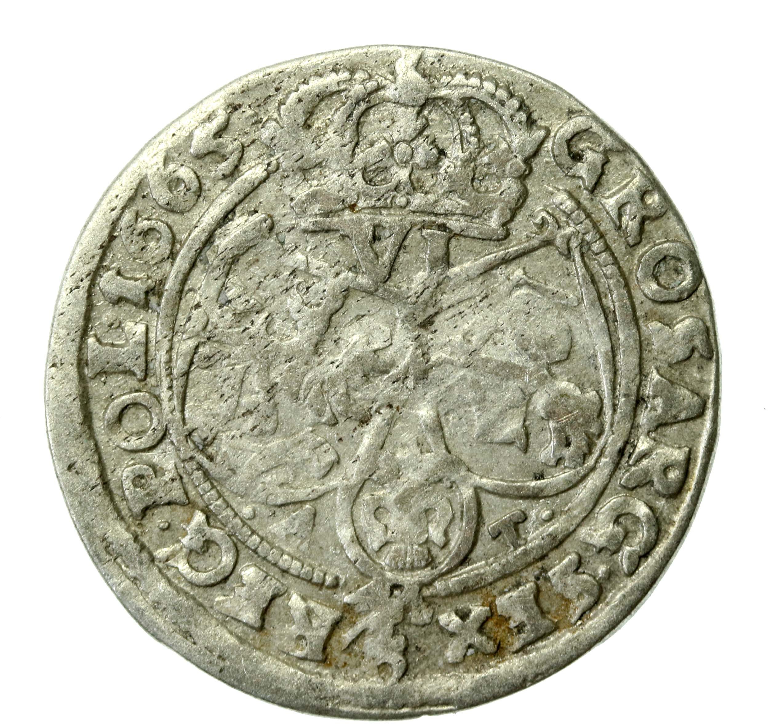 Jan II Kazimierz, Szóstak 1665 AT, Kraków. Stan zachowania 2-. Bardzo dobrze wybita moneta z połyskiem. Literatura: Kopicki 1678