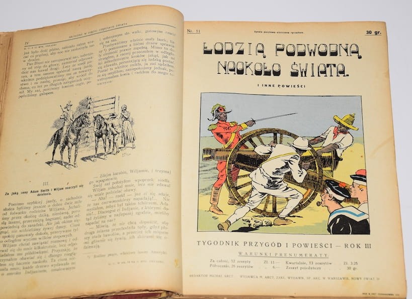 Powieść przygodowa opublikowana w 52 kolejnych zeszytach "Tygodnika Przygód i Powieści". Od nr. 5 do tytułu dodano: "i inne powieści", a na zachowanych okładkach drukowano kolejne tytuły: E. Berthet "Młodzież w pięciu częściach świata", C. Normand "Szmaragd Inkasów", L. de Rougemont "Trzydzieści lat wśród dzikich".