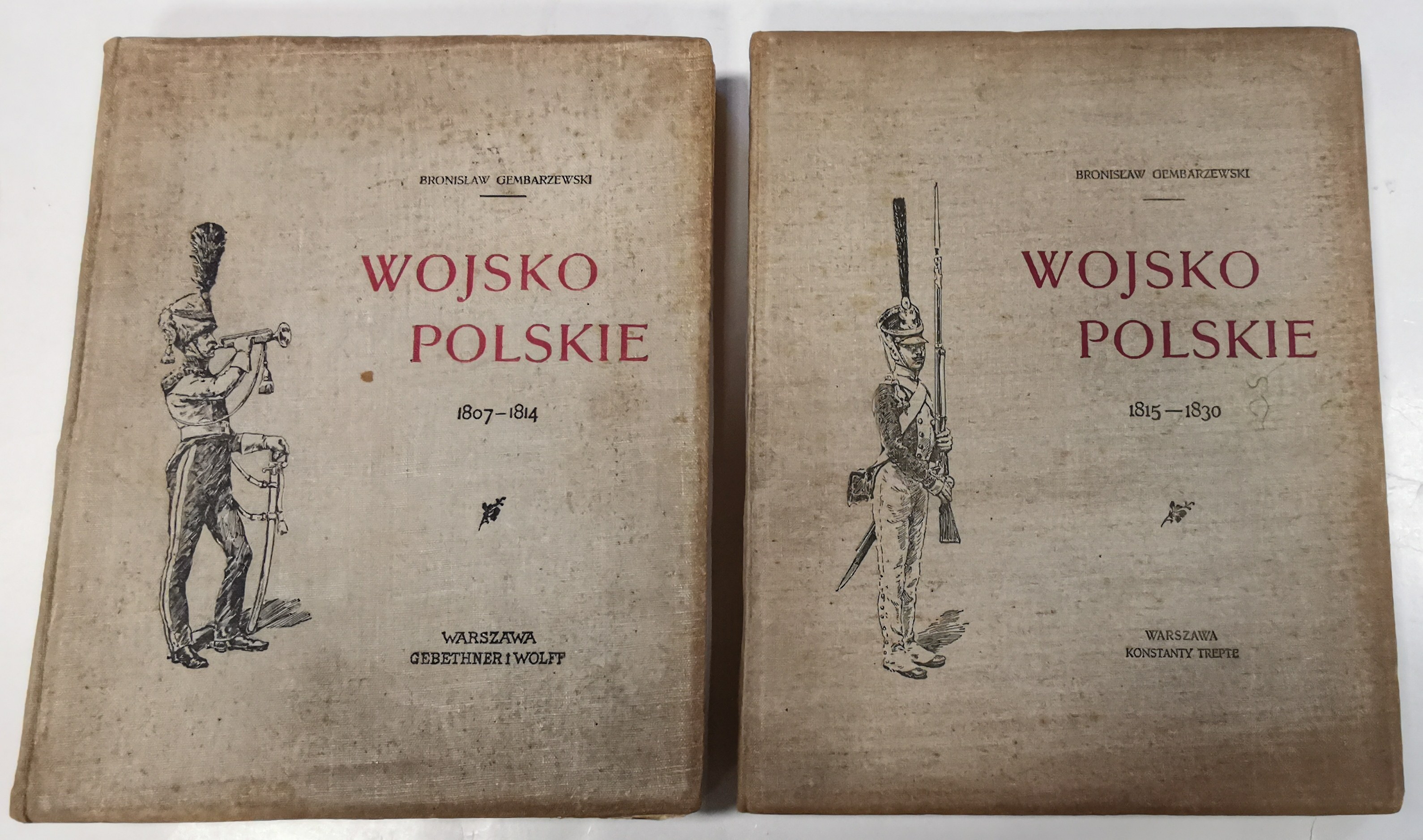 Dwie książki Bronisława Gembarzewskiego poświęcone wojsku polskiemu z pocz. XIX wieku, pierwsze wydania tychże.