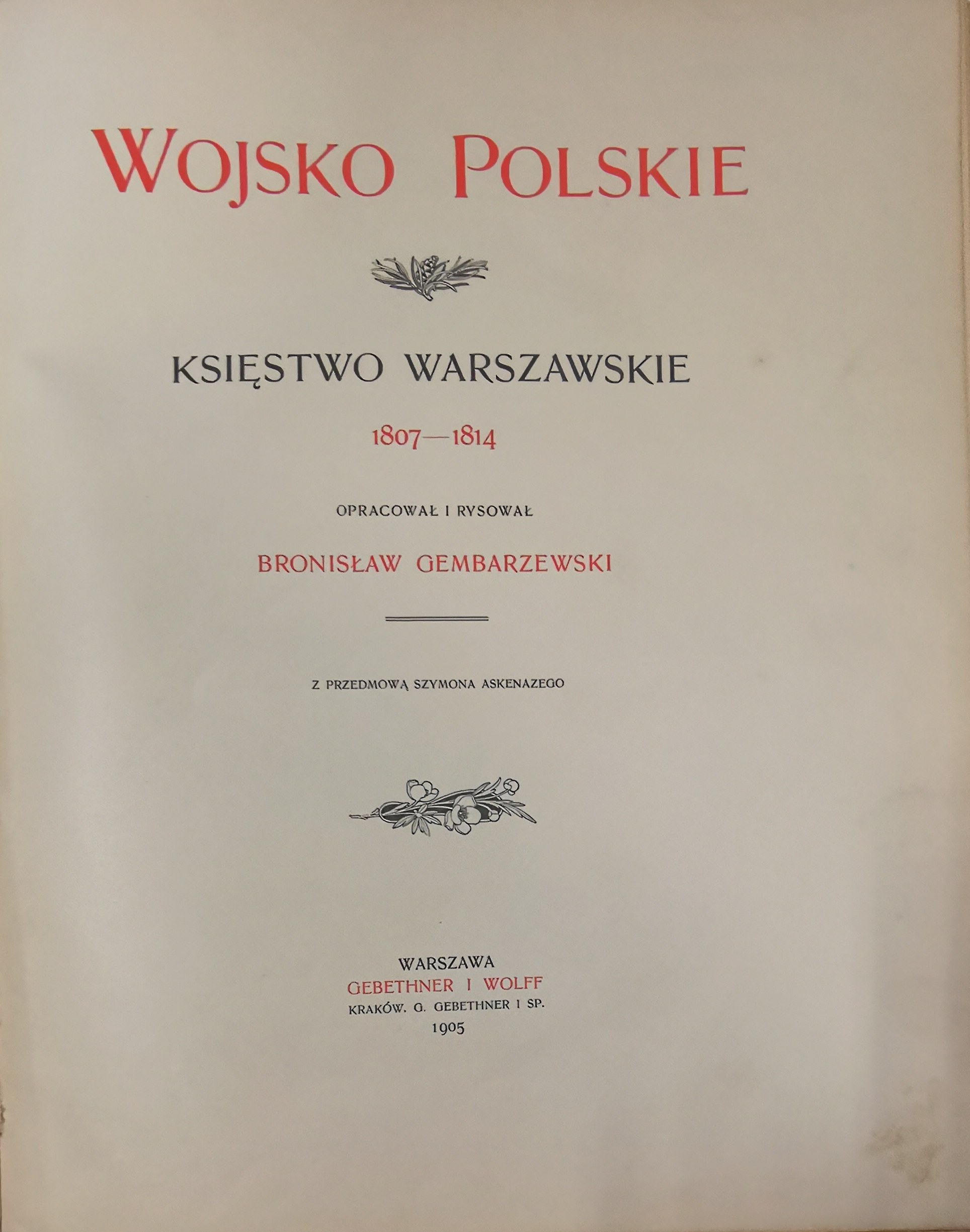 Wojsko Polskie, Księstwo Warszawskie 1807-1814. Opracował i rysował Bronisław Gembarzewski. Z przedmową Szymona Askenazego.