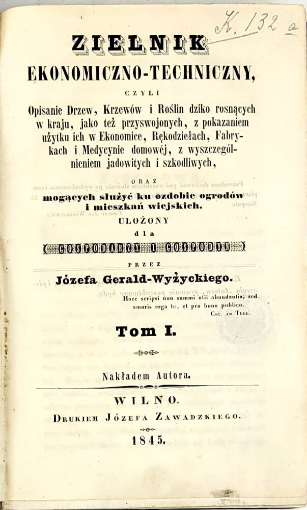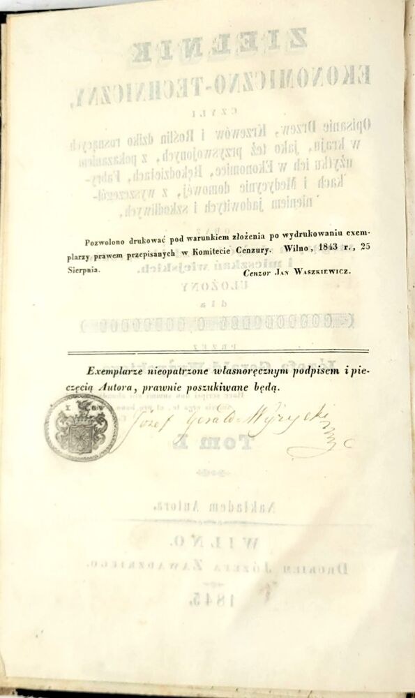 GERALD-WYŻYCKI- ZIELNIK ekonomiczno-techniczny, czyli opisanie drzew, krzewów i roślin t.1-2 Wilno 1845