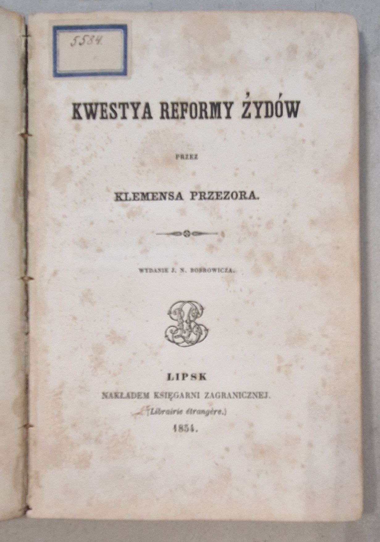 B) Józef Gołuchowski (pod pseudonimem), Kwestya reformy Żydów przez Klemensa Przezorę.