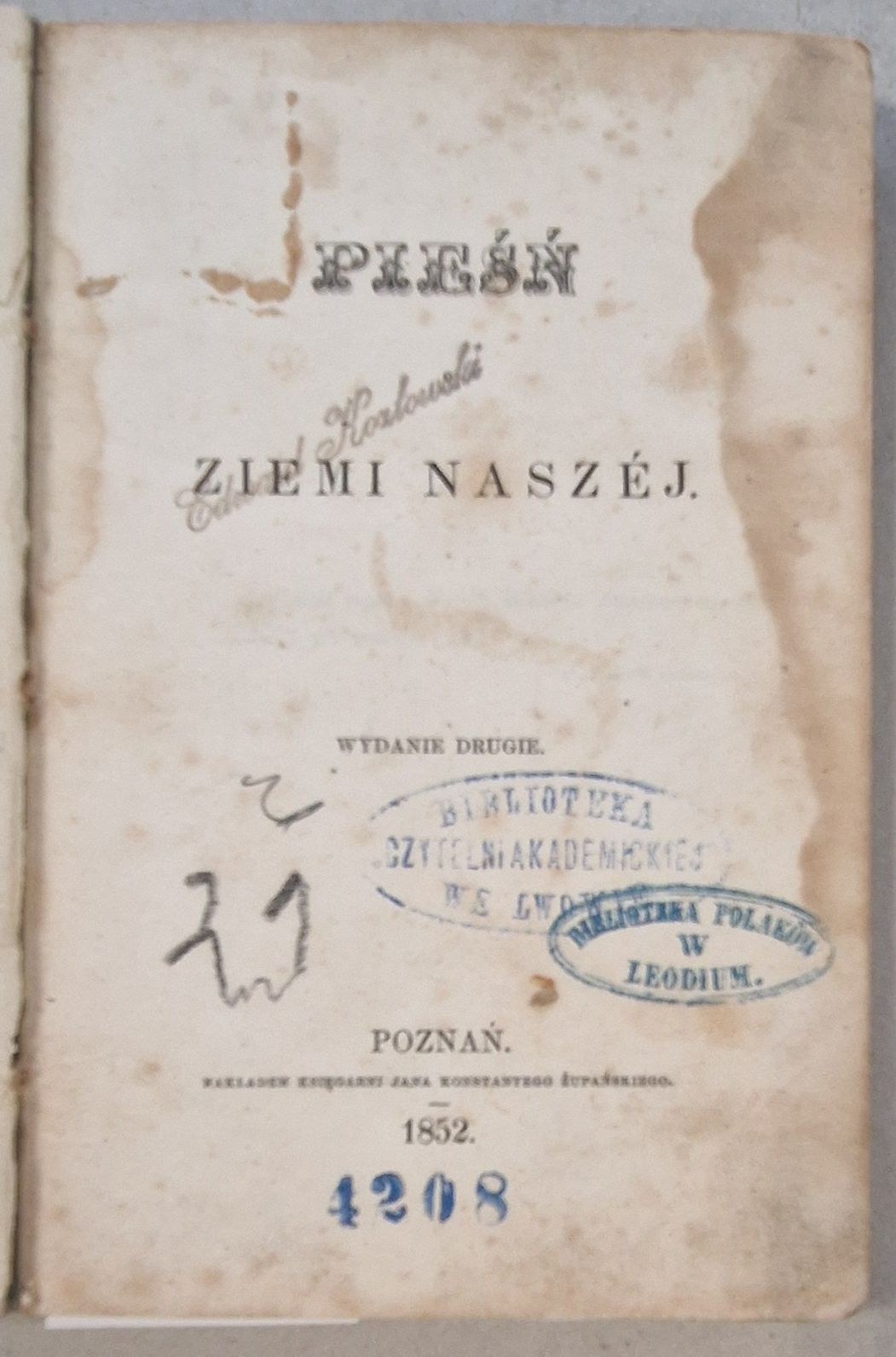 Wydanie drugie.; Poznań, 1852.; Nakładem Księgarni Jana Konstantego Żupańskiego.; Druk.: Poznań, Czcionkami W. Deckera i spółki.; Stron 87. Format 16,5 x 11 cm.