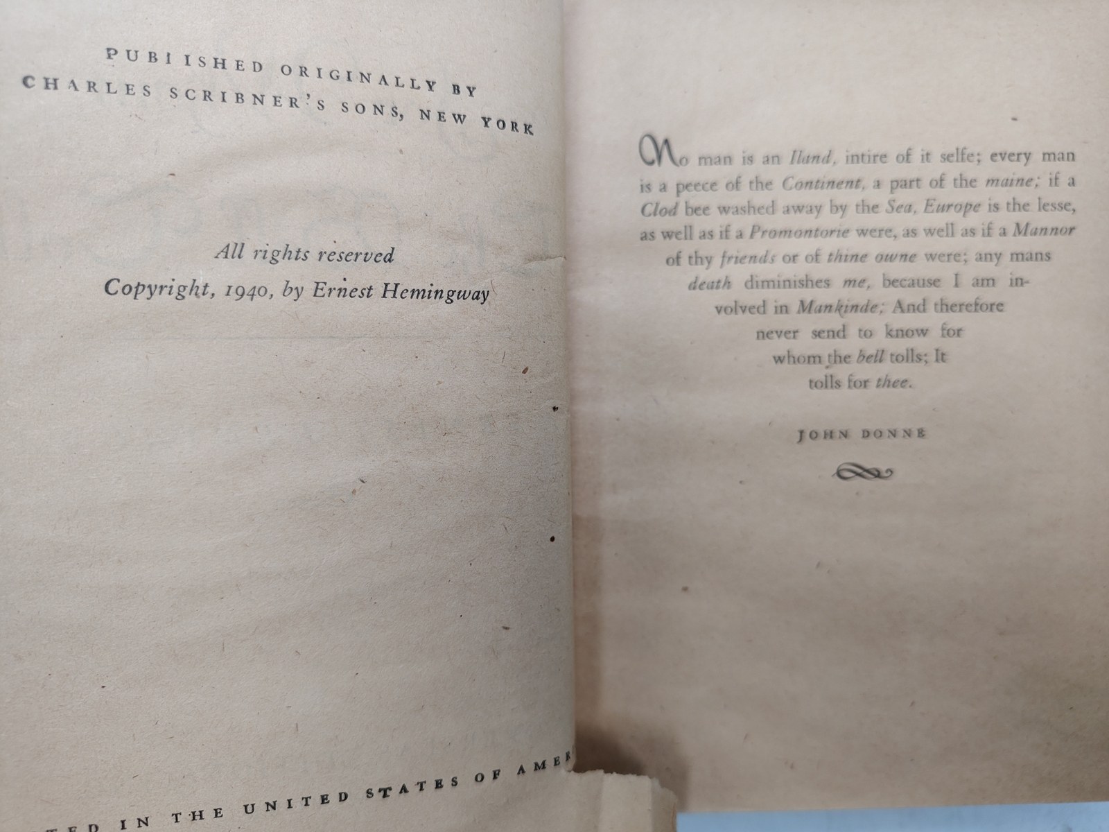 Ernest Hemingway – For Whom the Bell Tolls New York, 1940. Overseas Editions, Inc.