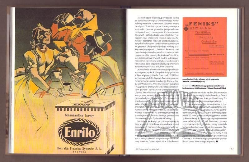 Historia krakowskich kawiarni i cukierni. Warszawa (2012). Wyd. Agora. 8, s. 216, liczne ilustr. w tym kolor., okł. brosz. wydaw.Biblioteka Gazety Wyborczej.