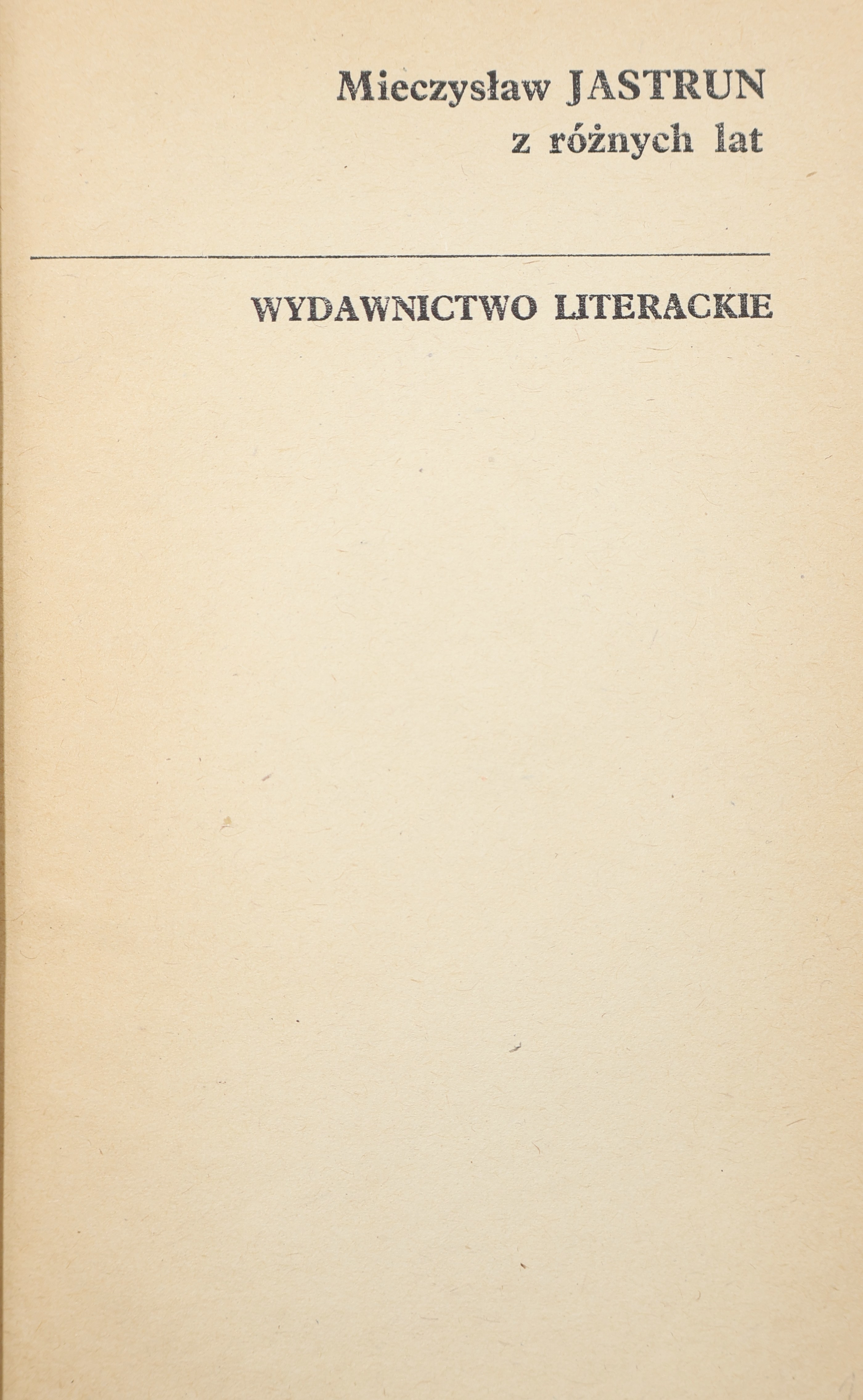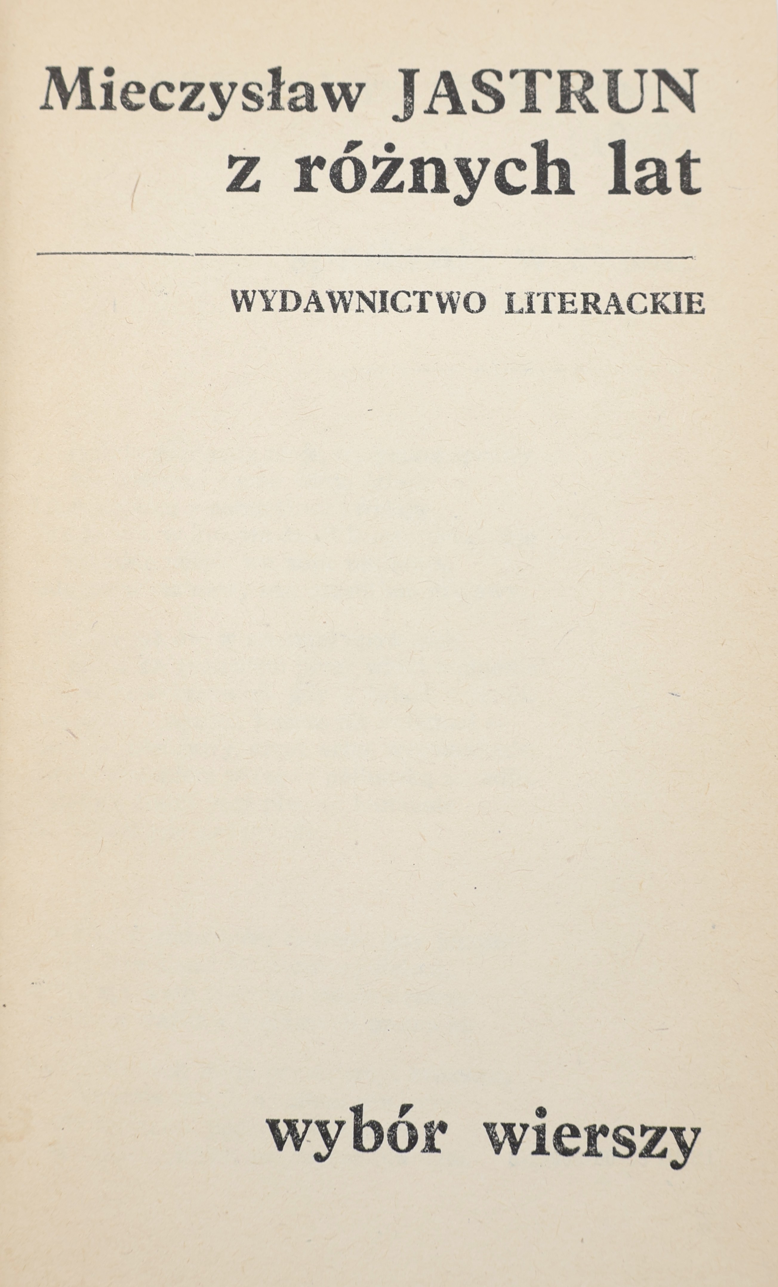 Obszerny wybór poezji Mieczysława Jastruna, obejmujący utwory z różnych okresów jego twórczości. Publikacja stanowi ważne świadectwo rozwoju poety i jedno z najistotniejszych wydań poetyckich lat osiemdziesiątych.