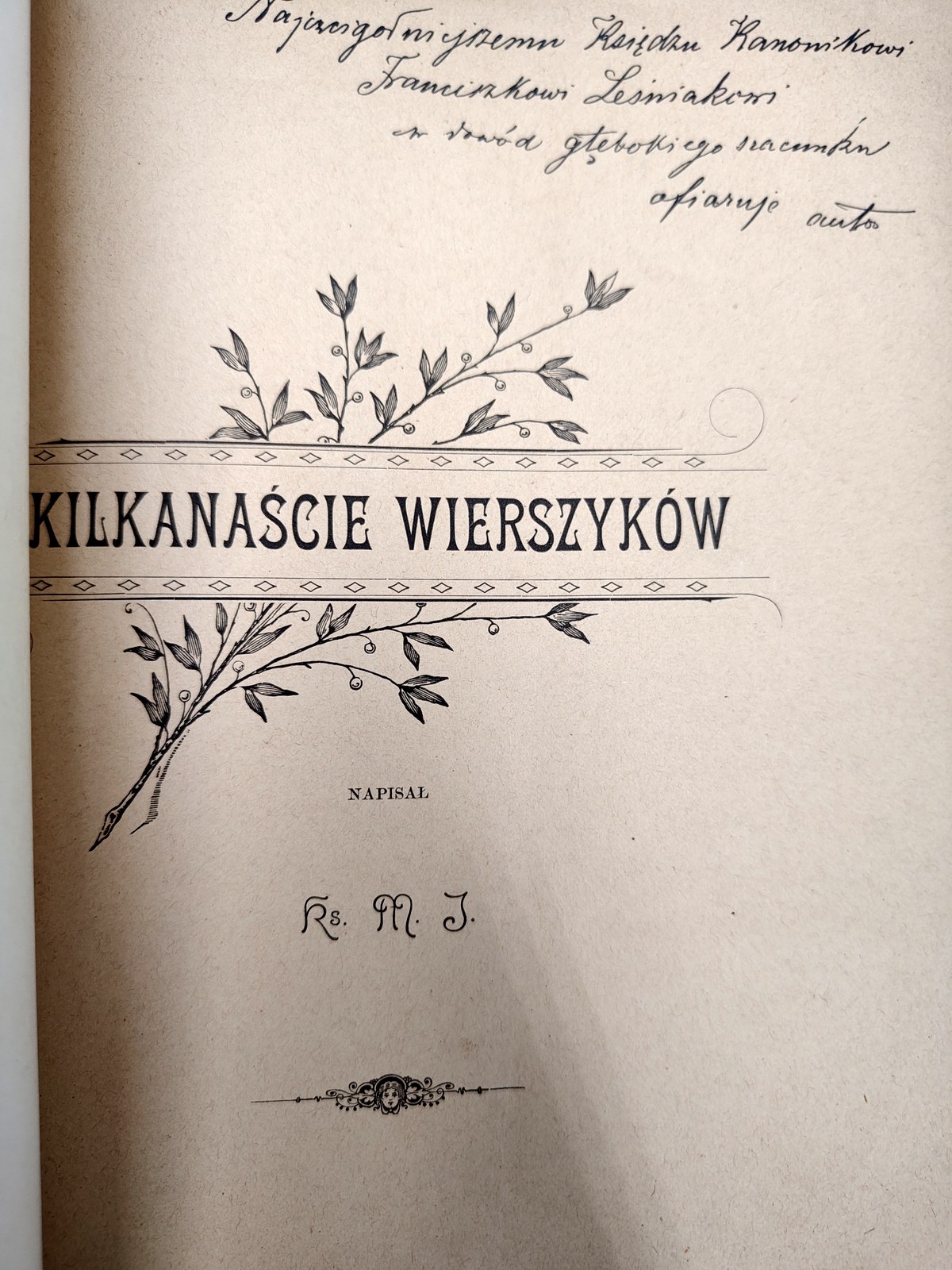 Dedykacja autora dla ks. Franciszka Leśniaka ( 1846 - 1915).