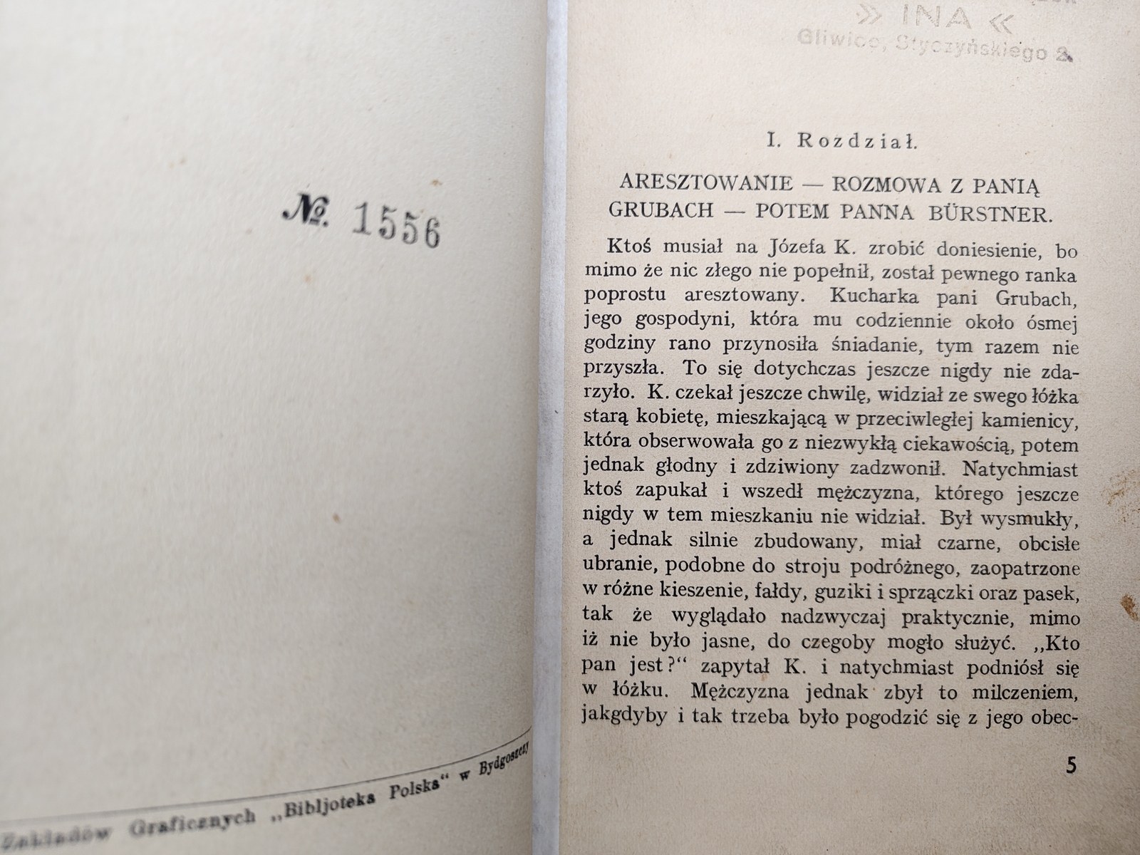 Wyjątkowy egzemplarz pierwszego wydania najbardziej znanego dzieła prekursora egzystencjalizmu Franza Kafki.*