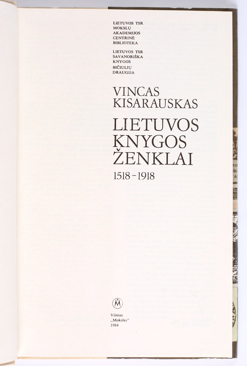 KISARAUKSAS Vincas - Lietuvos Knygos Zenklai [Litewskie znaki książkowe] 1518-1918. Wilno 1984. Wyd. Mokslas.