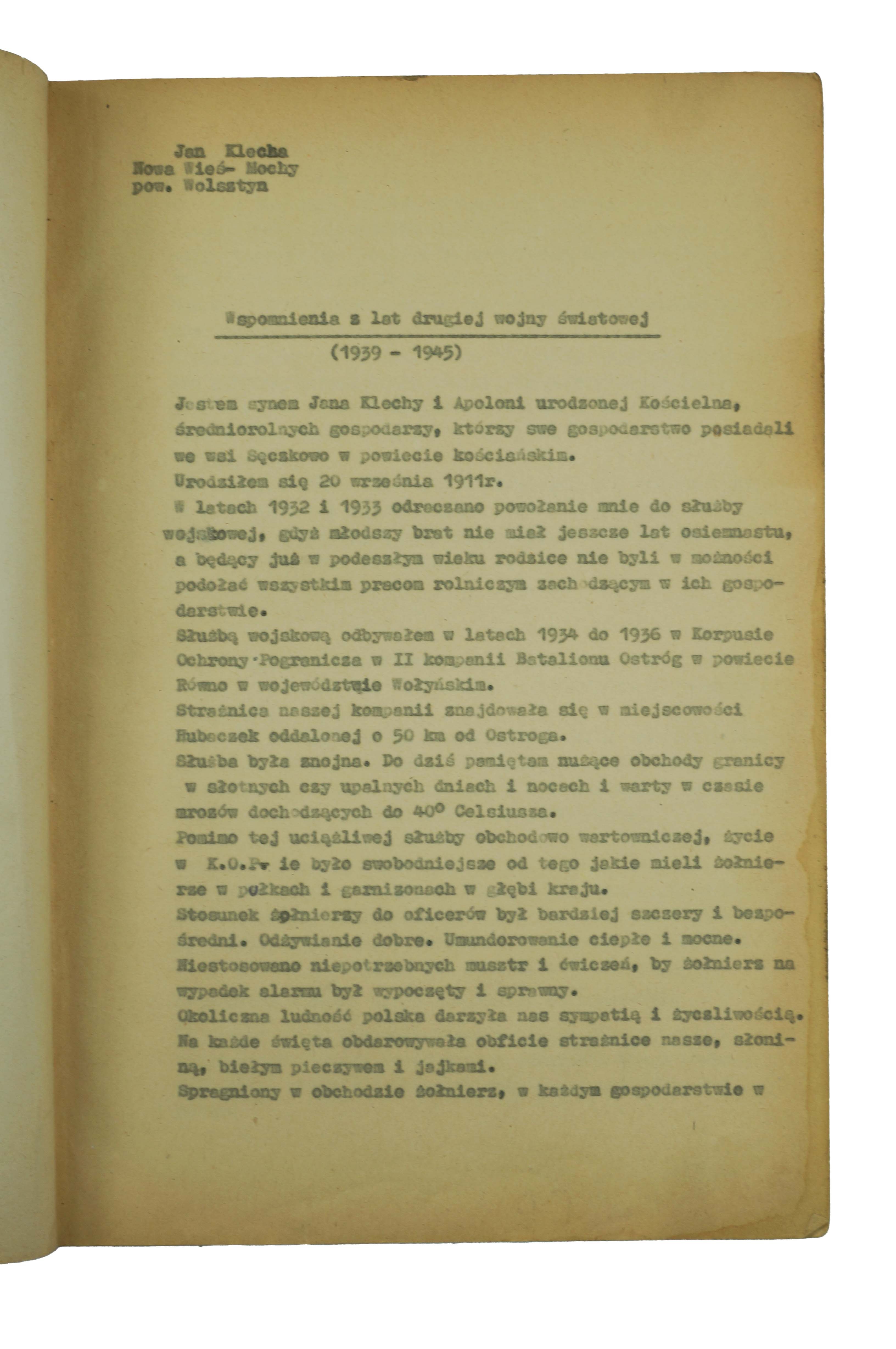 Wspomnienia z okresu II wojny światowej - Jan KLECHA, rolnik, Nowa Wieś, powiat Wolsztyn, maszynopis, napisano w roku 1966, pięć egzemplarzy maszynopisu wykonano w roku 1967, f.21x29,5cm, s. 36