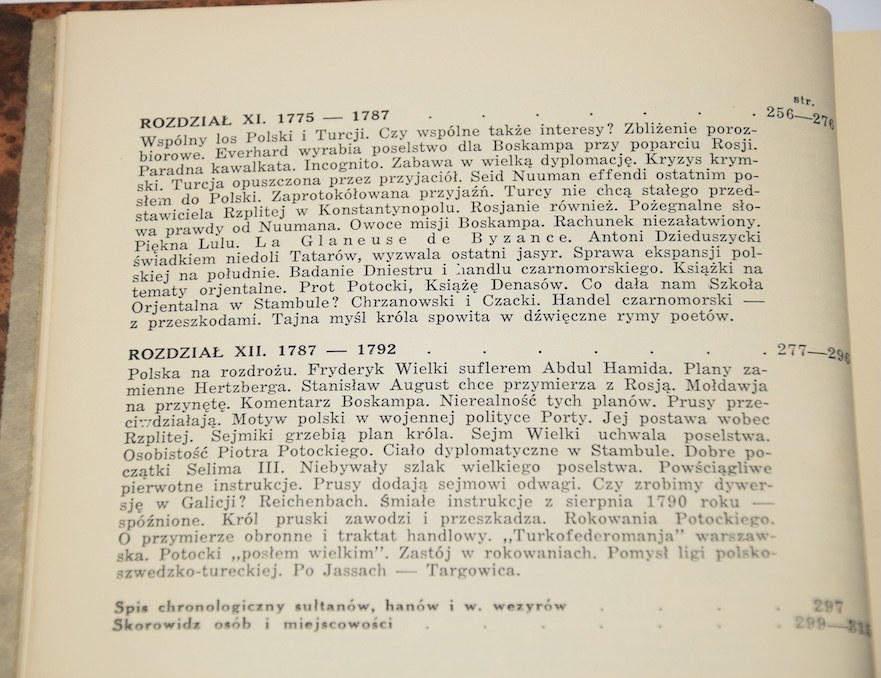 Na końcu "Spis chronologiczny sułtanów, hanów i w. wezyrów" oraz indeks osób i miejscowości.