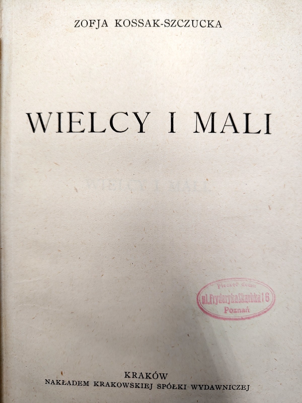 Kossak Szczucka - Zofia - Wielcy i Mali, Kraków 1927