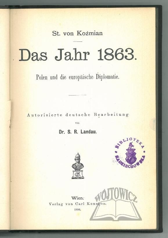 Polen und die europäische Diplomatie. Autorisierte deutsche Bearbeitung von Dr, S. r. Landau. Wien 1896. Verlag von Carl Konegen. Druck. K. und k. Hofbuchdrucker Fr. Wiiniker & Schickardt, Brünn. 8, s. XIII, 404, opr. psk. z epoki.