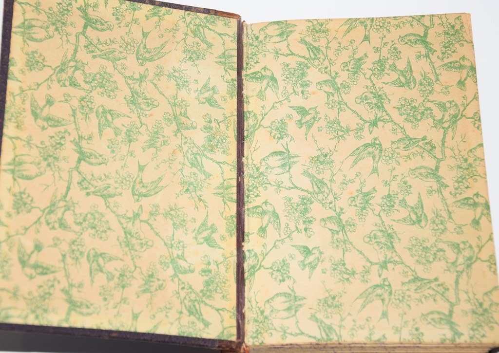 - Oprawa: twarda półskórek z epoki, złocenia na grzbiecie, ozdobne wyklejki, marmoryzowane brzegi kart