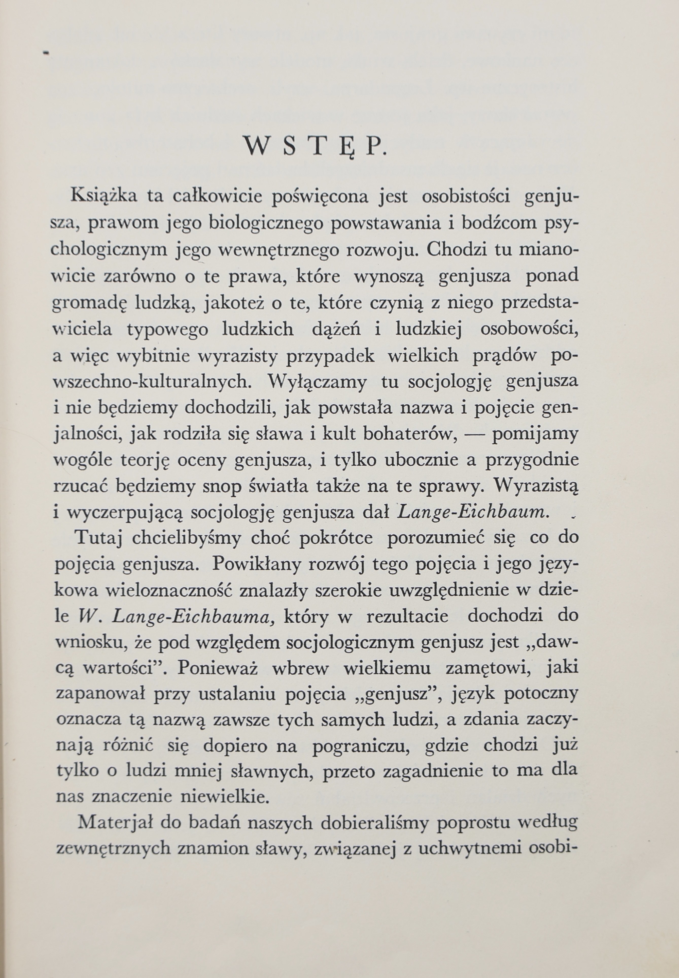 Klasyczne dzieło niemieckiego psychiatry i psychologa Ernsta Kretschmera (1888–1964), w którym autor podejmuje próbę charakterystyki osobowości wybitnych jednostek. Wydanie polskie w przekładzie Pawła Hulki-Laskowskiego, wzbogacone o zbiór portretów, stanowi cenny dokument historii psychologii i nauk humanistycznych w Polsce okresu międzywojennego.
