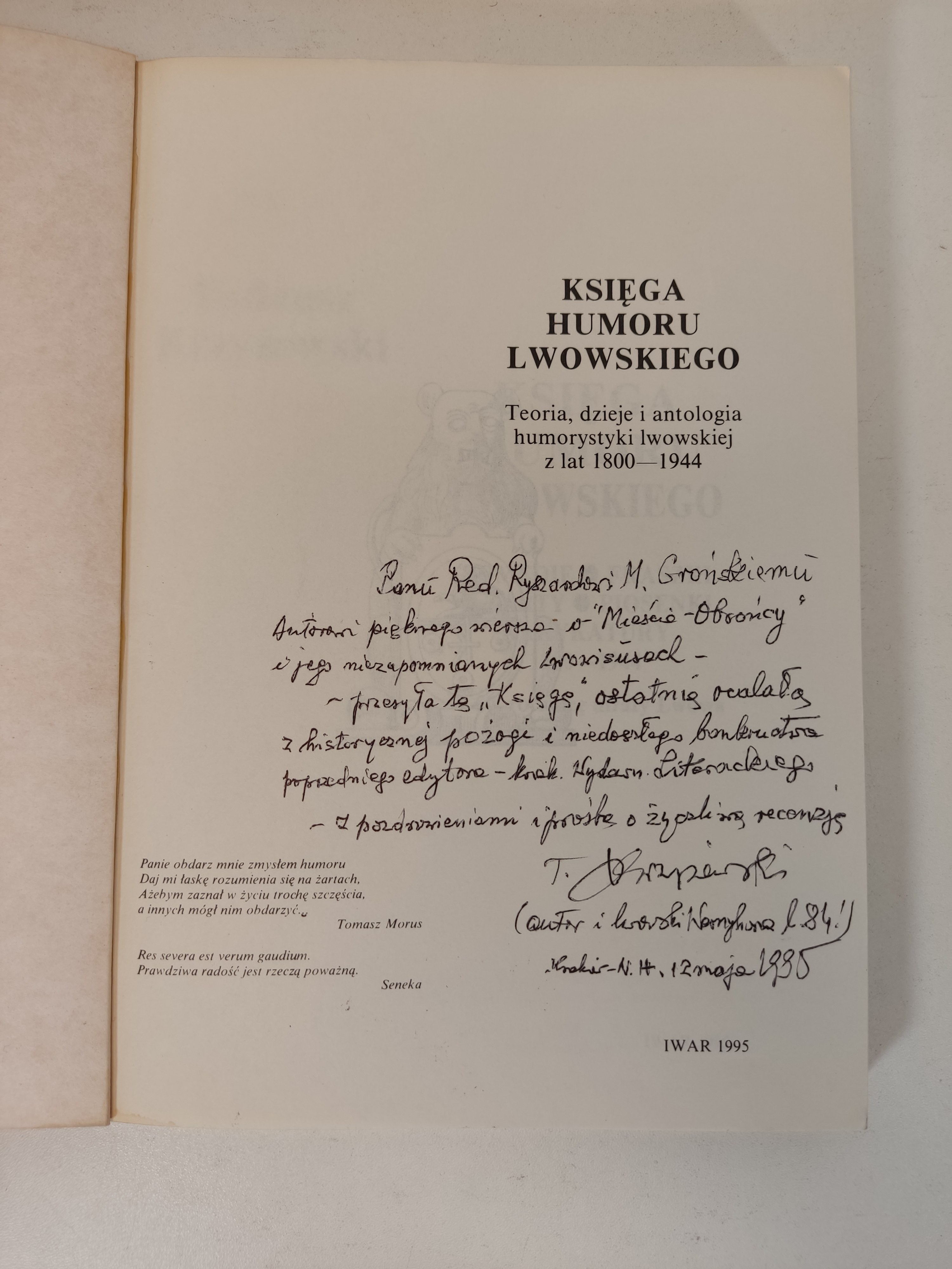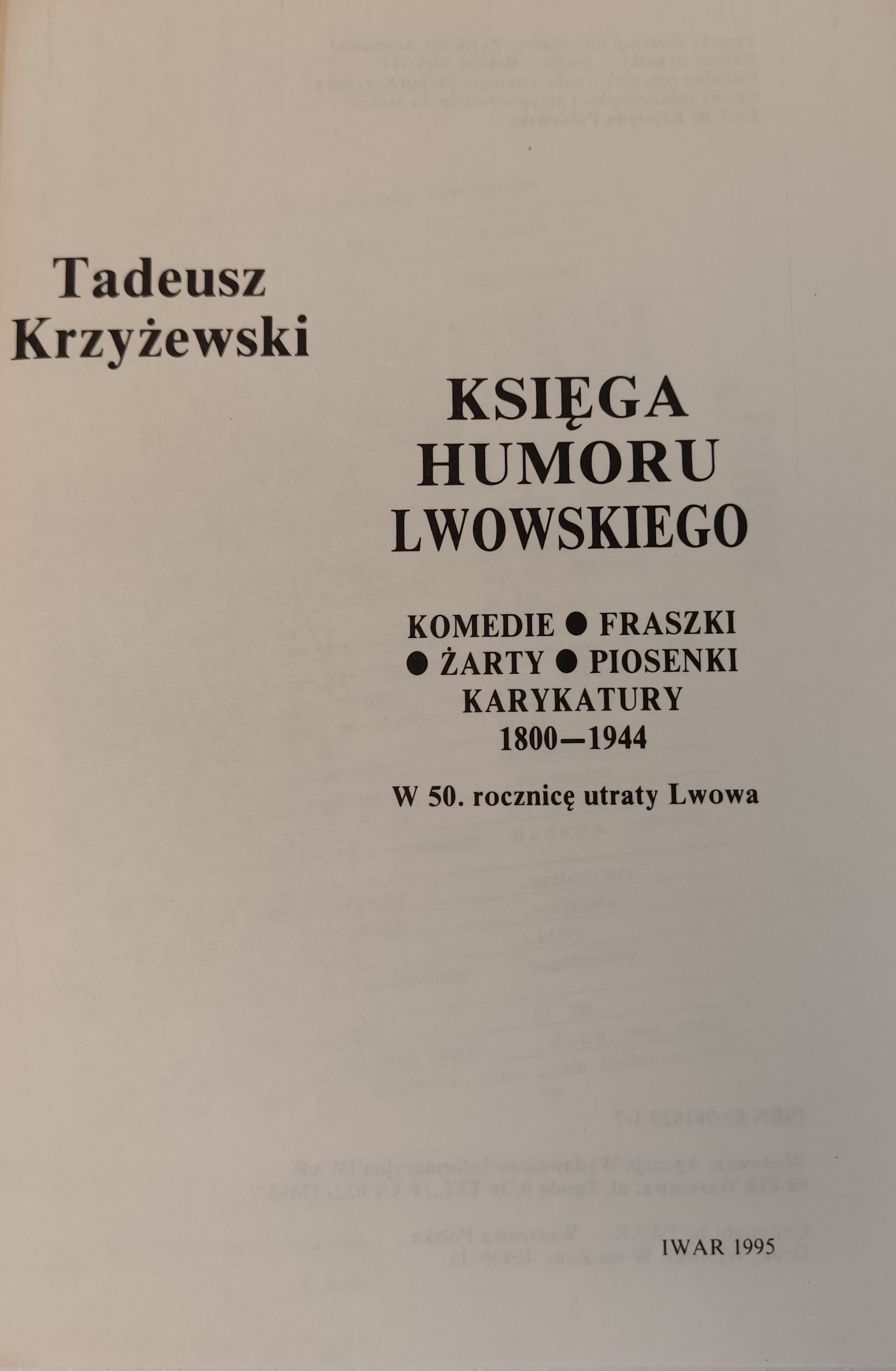 KRZYŻEWSKI Tadeusz - KSIĘGA HUMORU LWOWSKIEGO. Teoria, dzieje i antologia humorystyki lwowskiej z lat 1800-1944