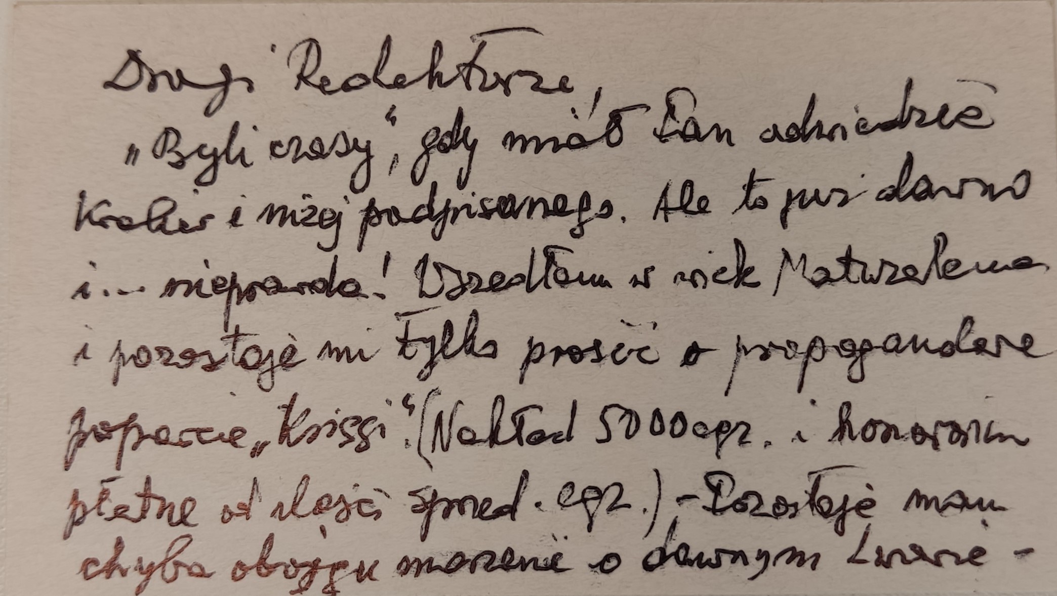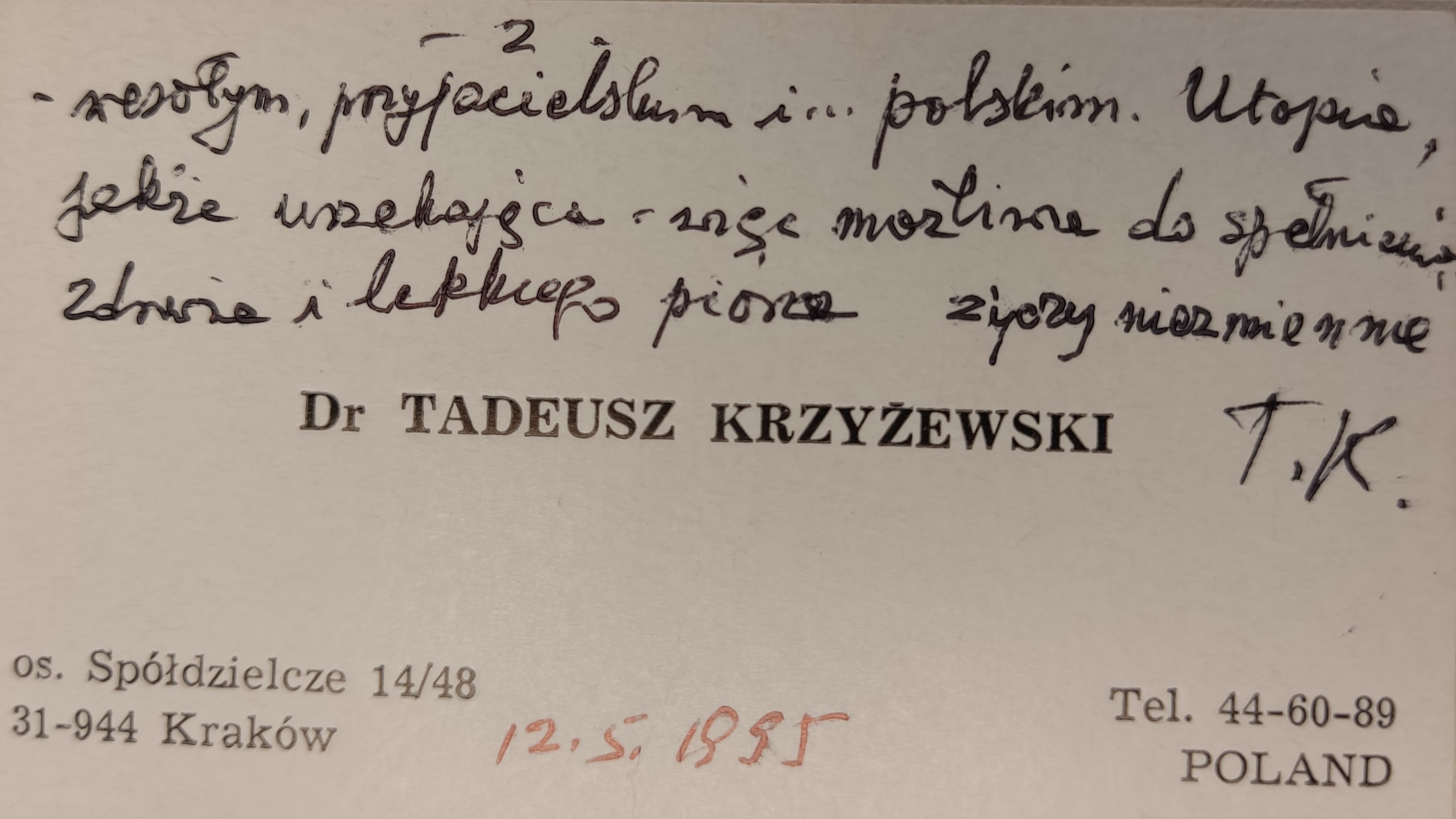 Wyd. Agencja Wydawniczo-Informacyjna IWAR. Warszawa 1995. Wym. 23,4x16,8cm; stron 288. Oprawa broszurowa(nieznaczne przybrudzenia). Projekt ilustracji na okładce Z. Acedański. Rewers okł. - grafika R. Mękicki. Okładkę zaprojektował i wykonał S. Szczypka. Na karcie przedtytułowej odręczna dedykacja od Autora dla Marka Grońskiego, dołączona również wizytówka Krzyżewskiego z krótkim listem do Grońskiego.