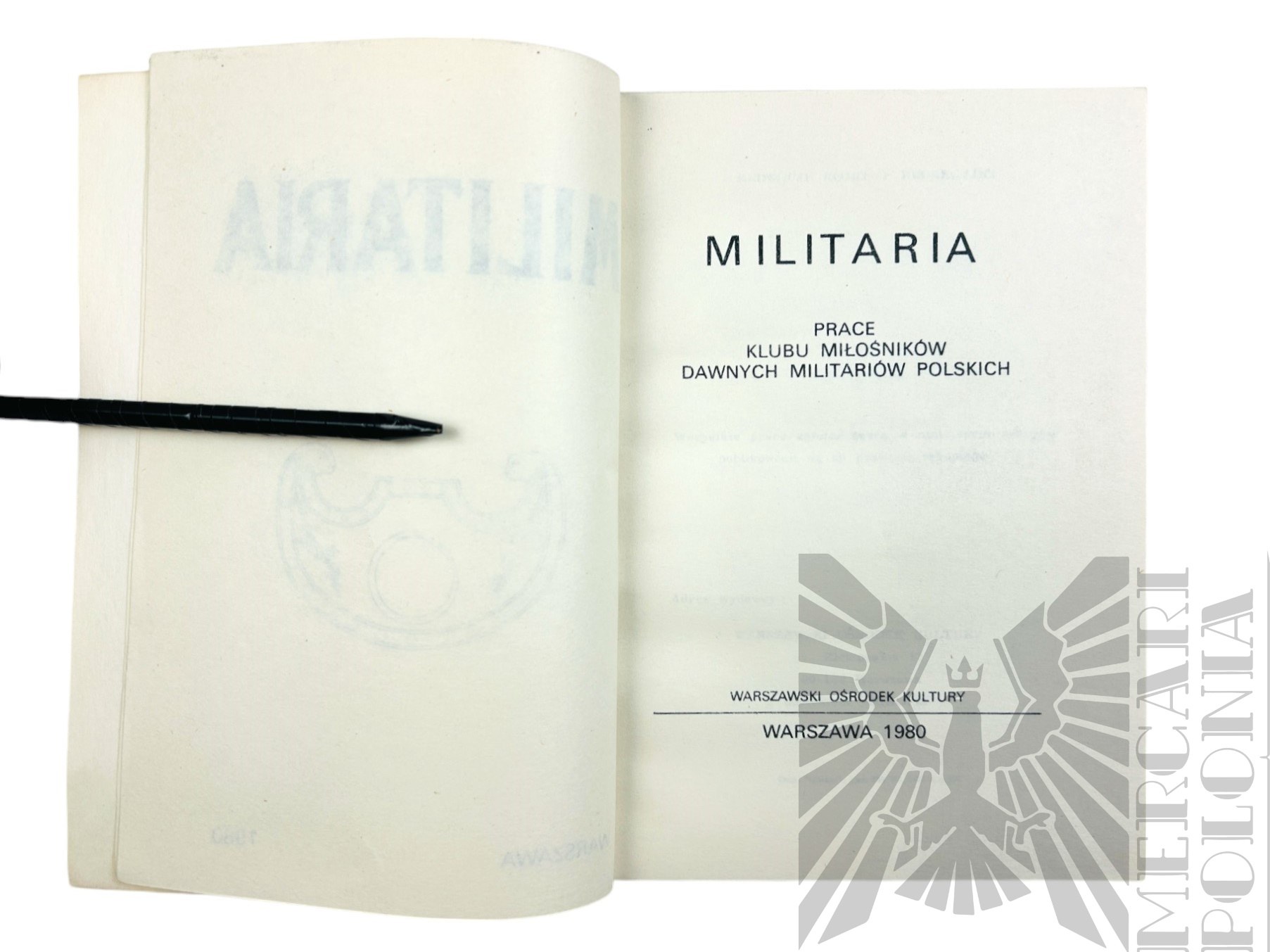 Książka “Militaria” wydana w Warszawie przez Warszawski Ośrodek Kultury w 1980 roku. Okładka miękka, 56 stron.