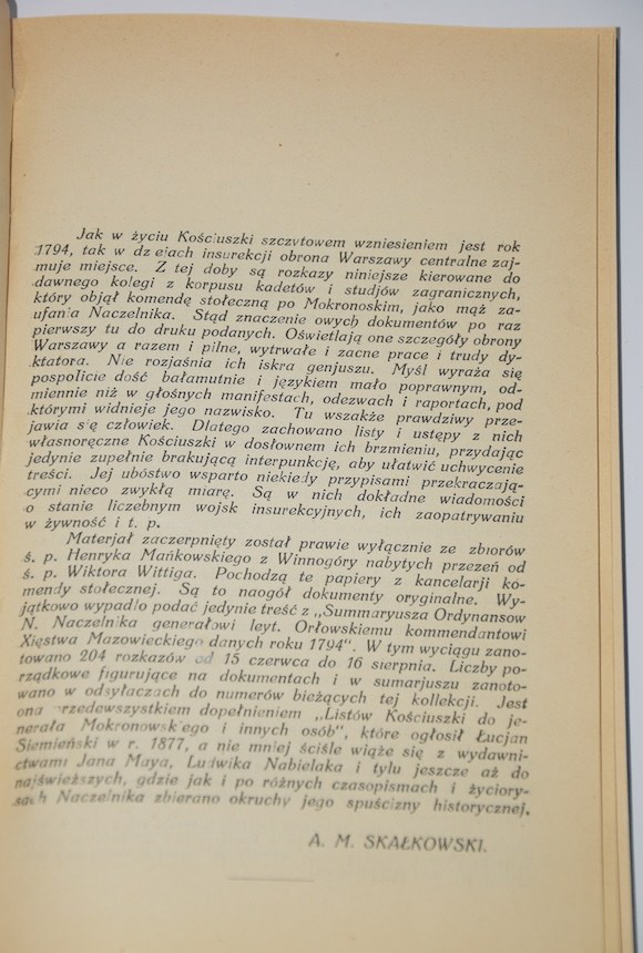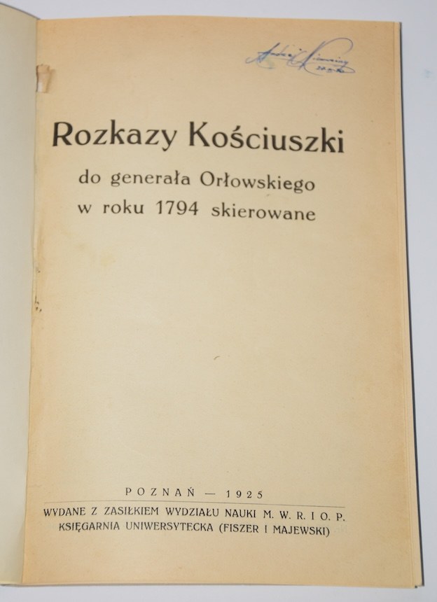 [księgozbiór A. Nieuważnego] SKAŁKOWSKI A. M. - Rozkazy Kościuszki do generała Orłowskiego w roku 1794 skierowane. Poznań 1925.