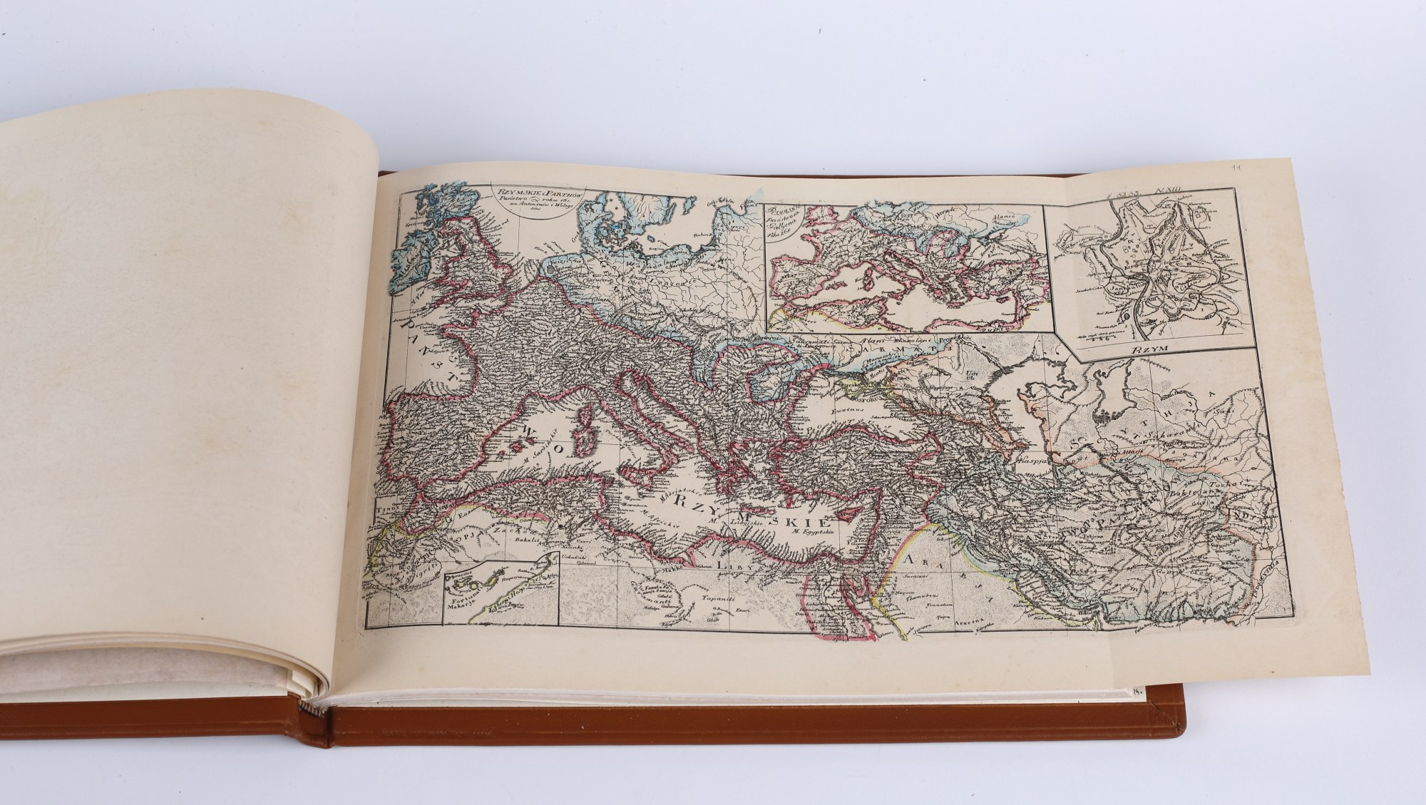 S. 12, [8], [42] k. tabl. oryg. + 1 k. tabl. (numizm.) w fotokopii. Wys. 29,5 cm. Luksusowa oprawa współczesna, autorstwa Marka Hoffmana (sygn. suchym tłokiem na wewnętrznej stronie oprawy): pełna skóra, bogato tłoczona na licu i tylnej okładce. Grzbiet podzielony na 6 pól, z czego w 3 polach złocona tytulatura, w reszcie zaś ozdobniki. Zach. oryg. okł. brosz. Ekslibris.