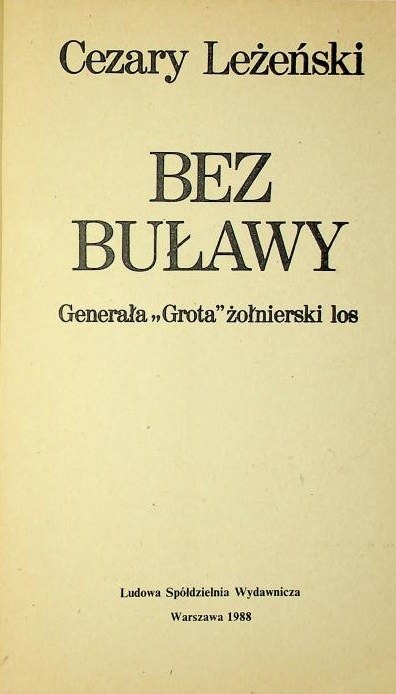 LEŻEŃSKI Cezary - BEZ BUŁAWY Generała ,,Grota`` żołnierski los