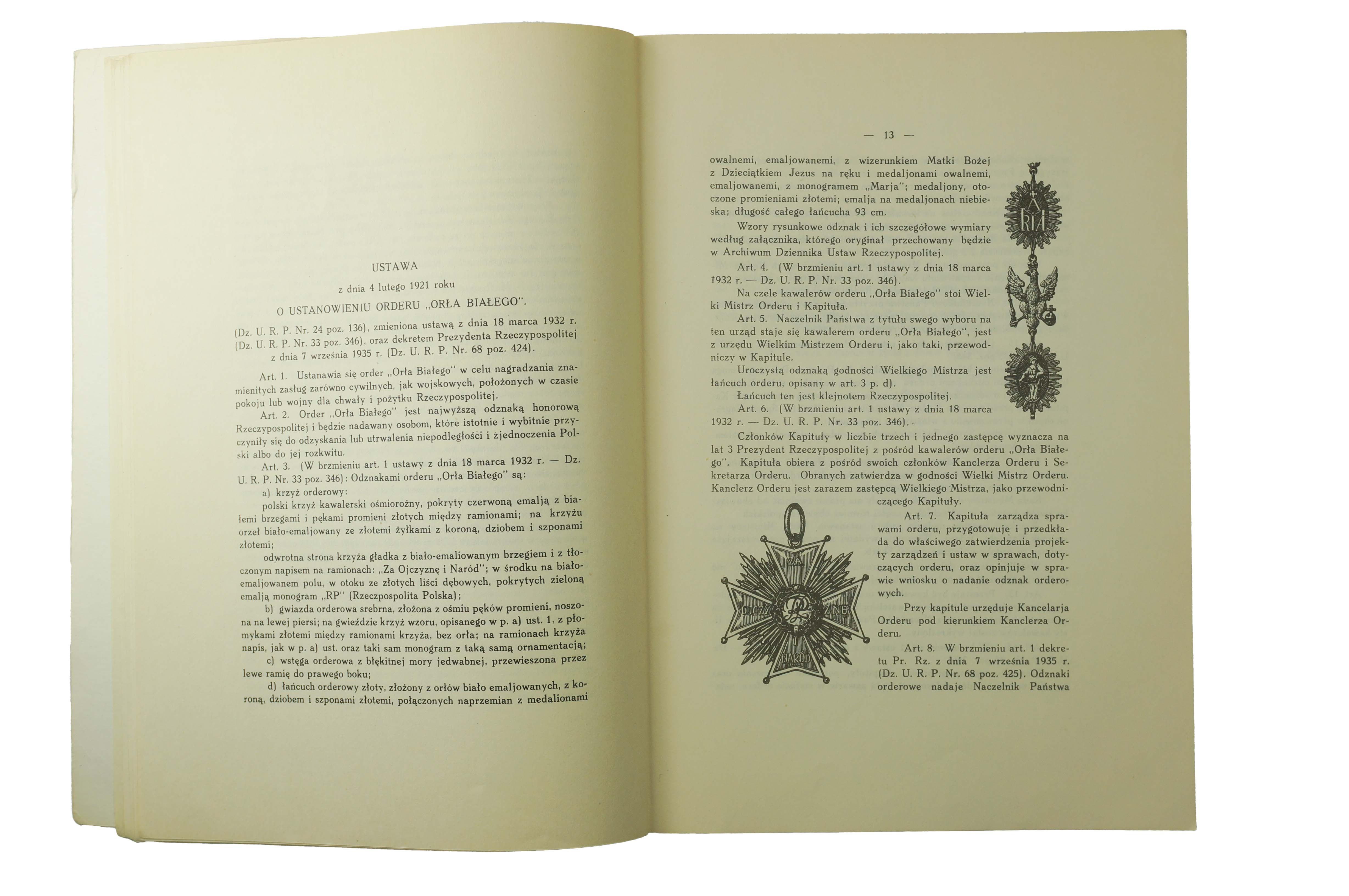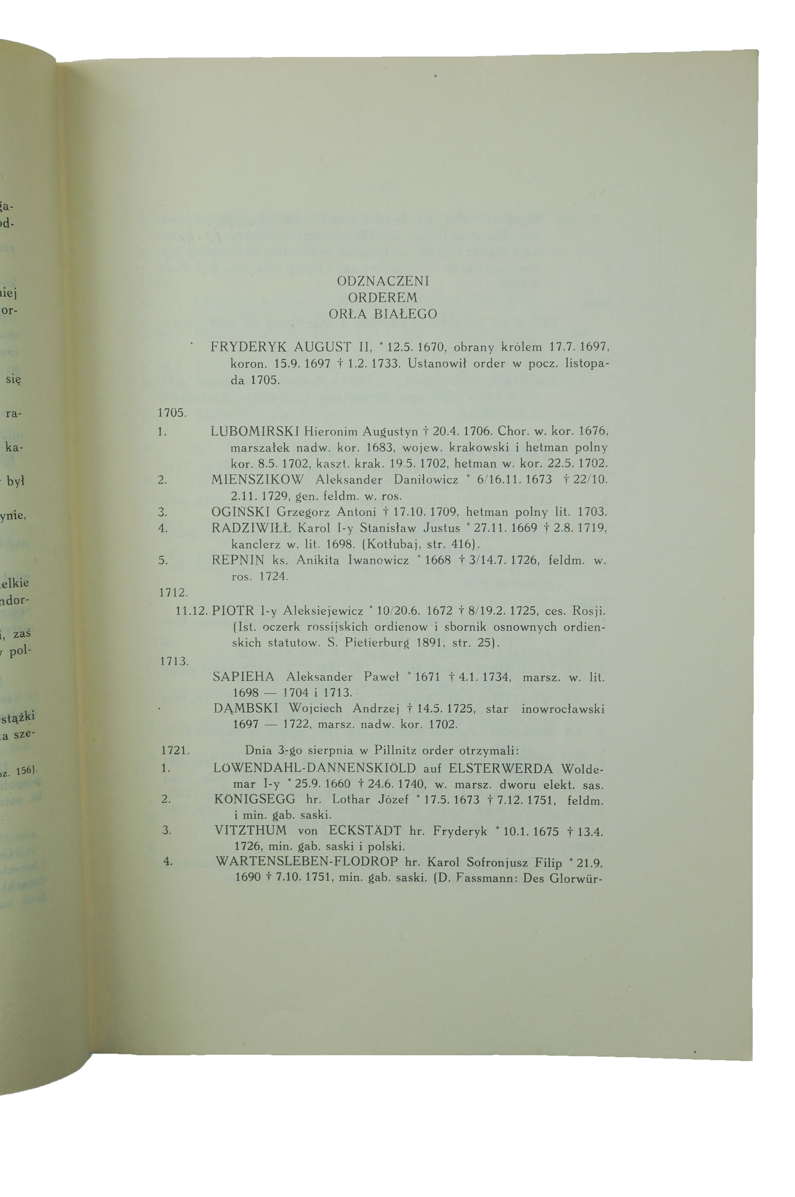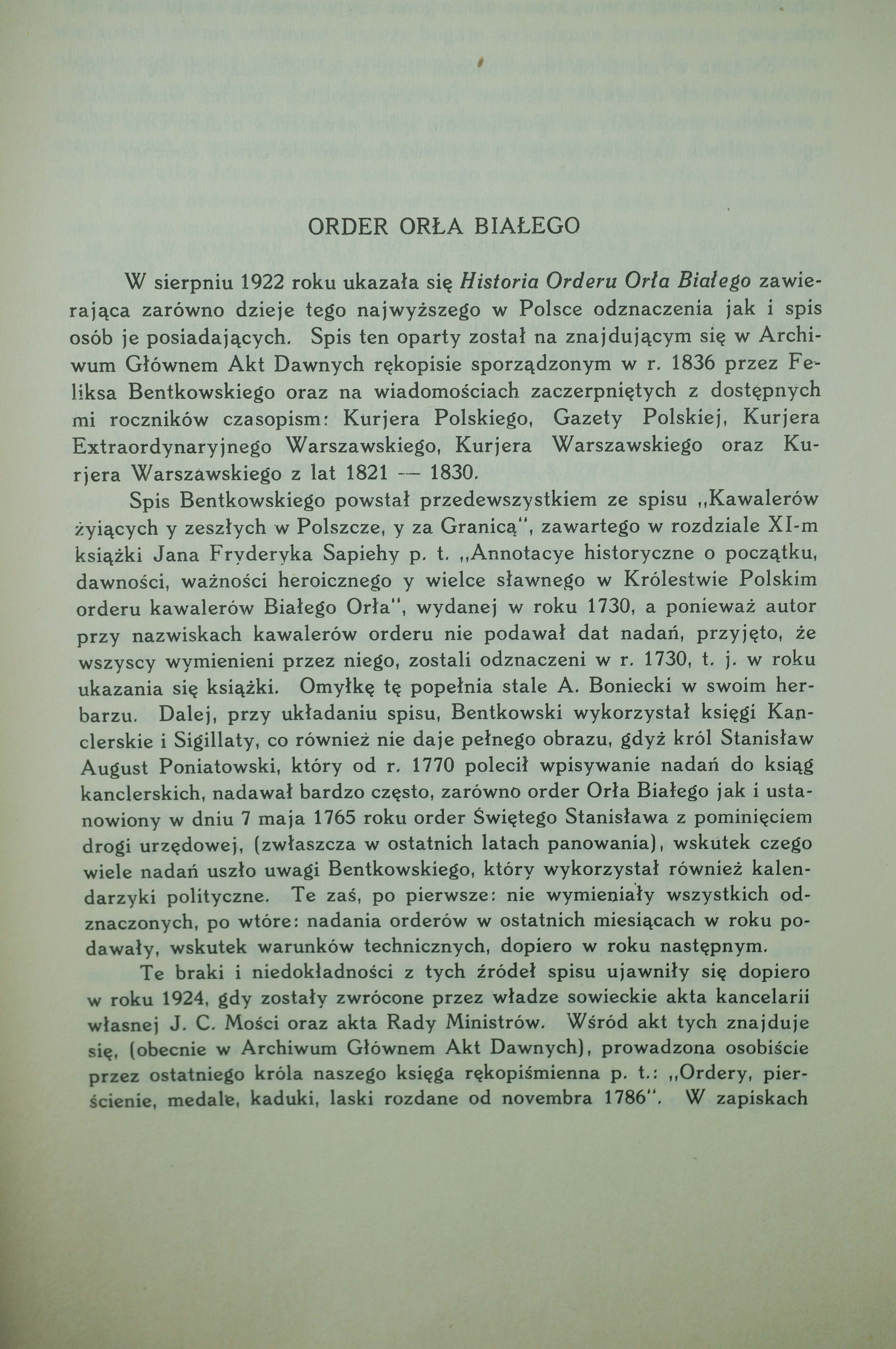 Order Orła Białego - Stanisław Łoza , Warszawa 1939 [REPRINT Warszawa 1985], f. 20,5x28,5cm, s. 91