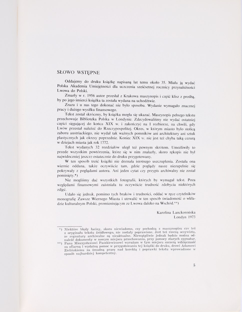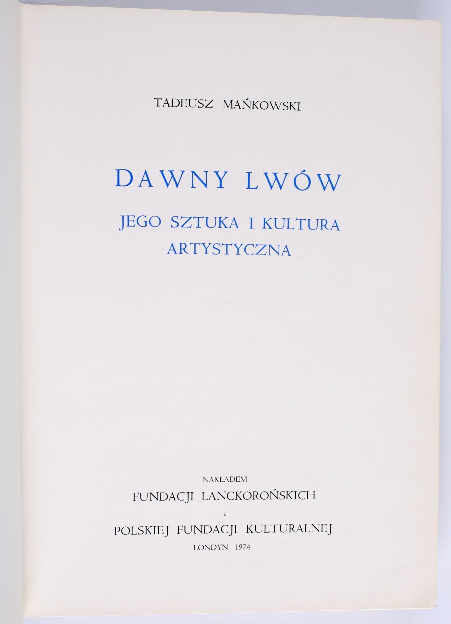 MAŃKOWSKI Tadeusz - Dawny Lwów, jego sztuka i kultura artystyczna. Londyn 1974. Nakł. Fund. Lanckorońskich i Polskiej Fundacji Kulturalnej.