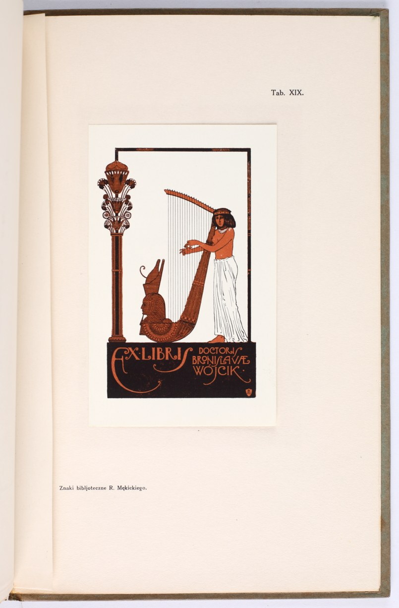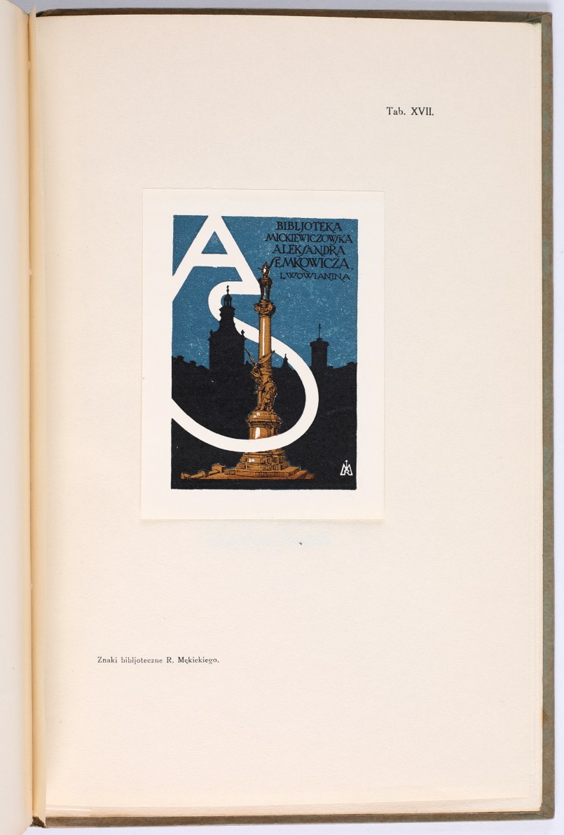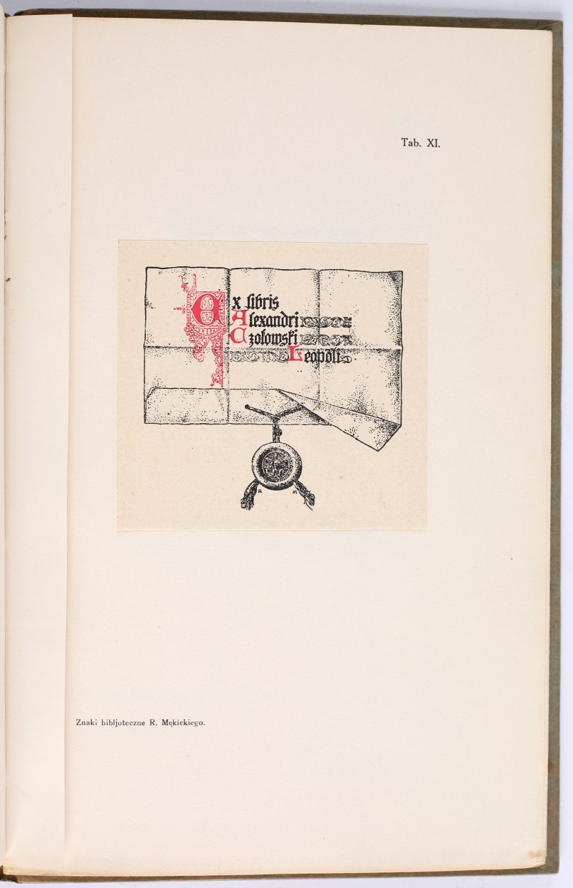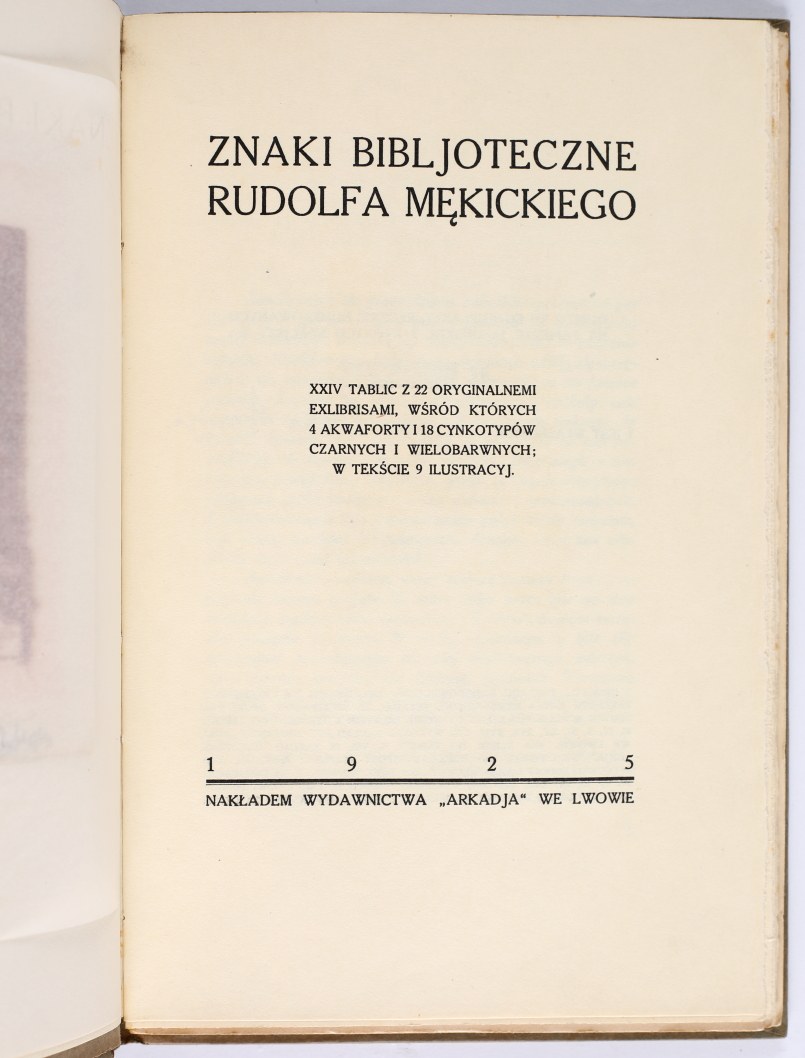 MĘKICKI Rudolf] - Znaki bibljoteczne Rudolfa Mękickiego. XXIV tablic z 22 oryg. exlibrisami, wśród których 4 akwaforty i 18 cynkotypów czarnych i wielobarwnych; w tekście 9 ilustracyj. Lwów 1925. Nakł. Wyd. "Arkadja".