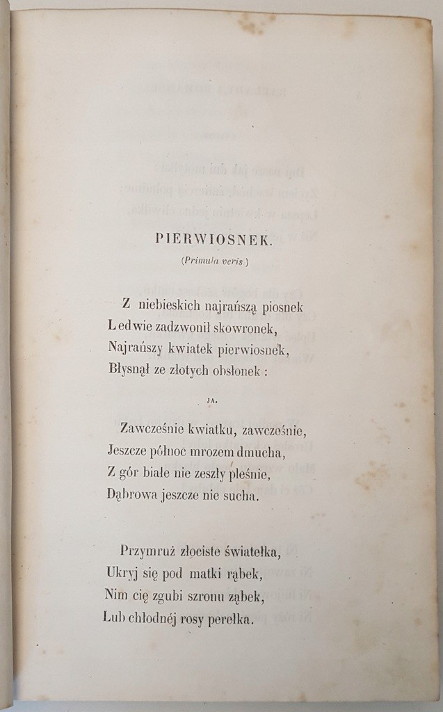 Oprawa półskórek współczesny (w t. IV zachowana oryginalna okładka broszurowa), barwione górne obcięcie kart. W t. IV brak karty 289/290 z Objaśnienia; foxing-odbarwienia papieru charakterystyczne dla epoki, pieczątki, nieliczne miejscami podkreślenia w tekście, podpis wł. , zabrudzenia.