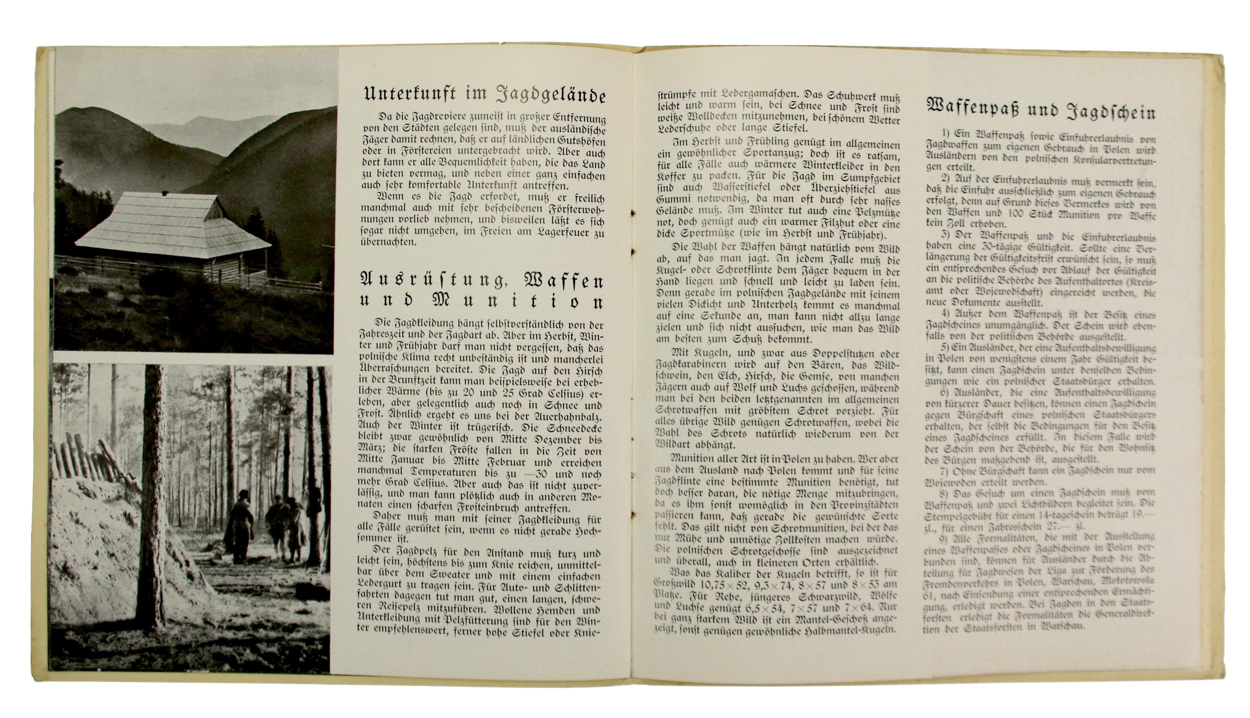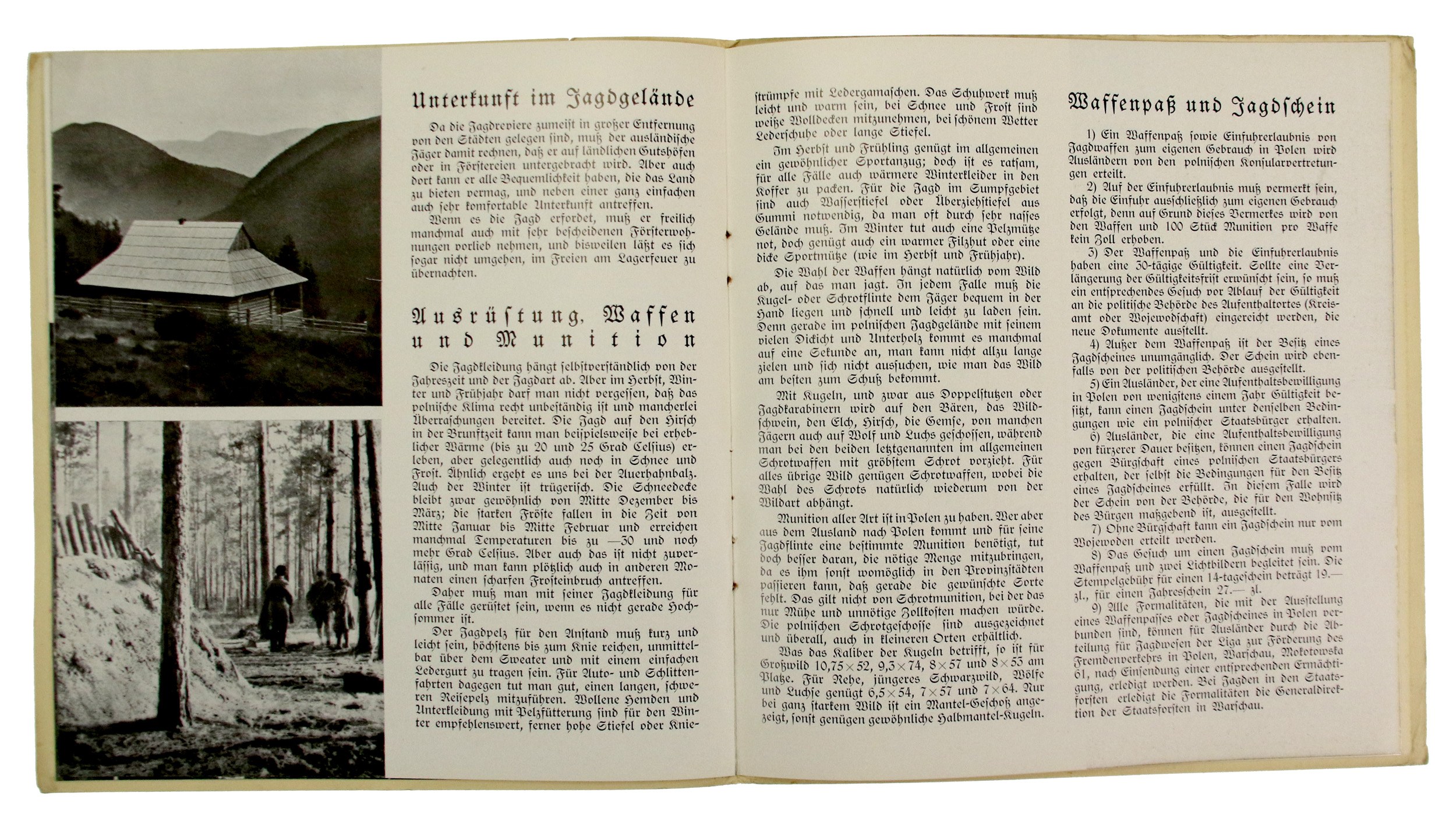 Polen als Jagdebiet, folder reklamowy Polski w języku niemieckim. II RP. 24 strony, wym. 20 x 21 cm.