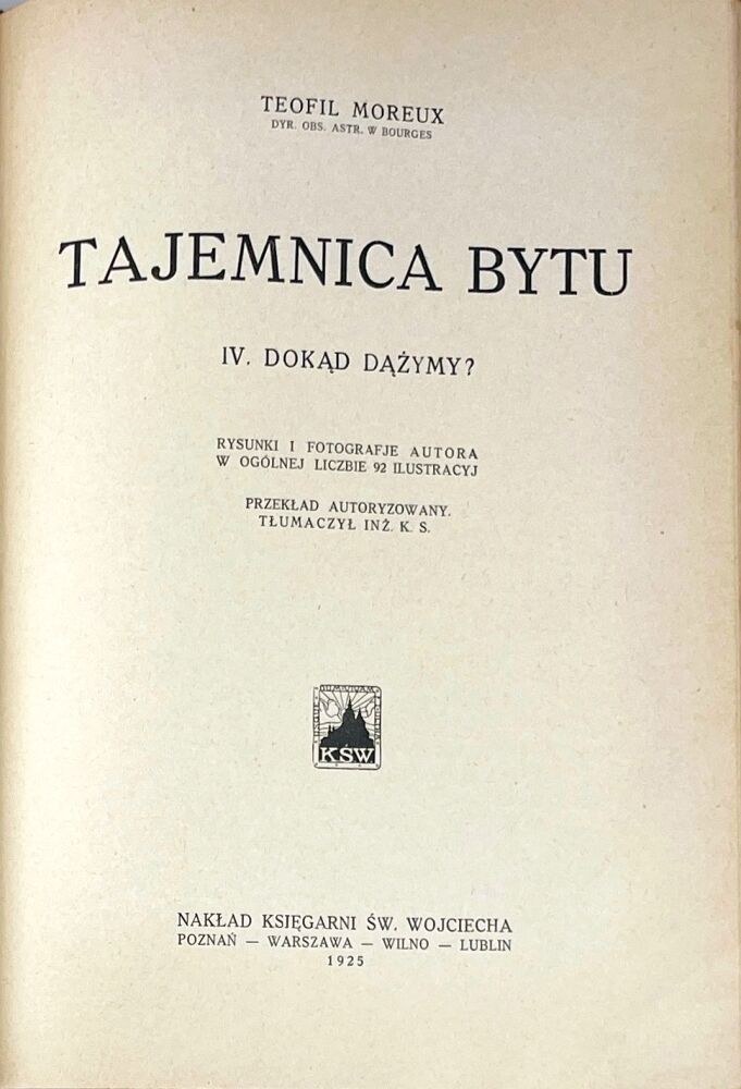 IV. Dokąd dążymy? Rysunki i fotografje autora w ogólnej liczbie 92 ilustracyj. Poznań [i in.] 1925. Nakład Księgarni Św. Wojciecha, s. [4], 128, [2], ilustr. w tekście, 24,5 cm,