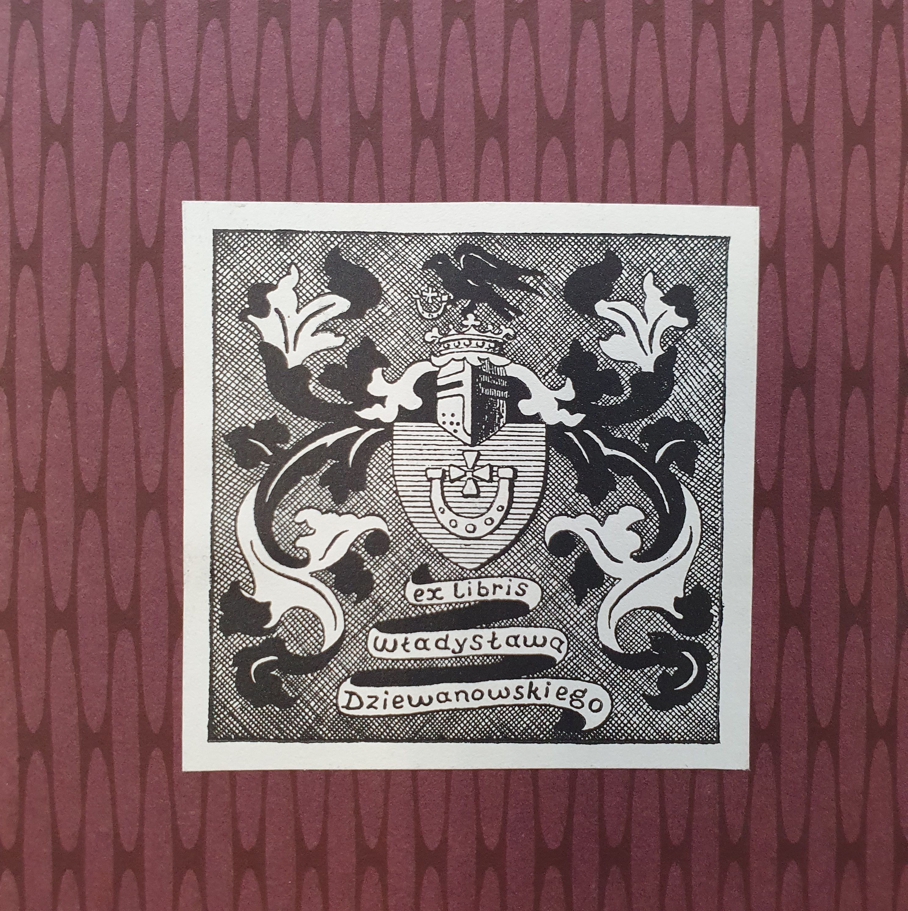 Na wyklejce: ex libris Władysława Dziewanowskiego (odmiana herbu Jastrzębiec - być może chodzi o dr inż. ppłk. W.D. (1894-1951) - m.in. redaktora pisma „Broń i Barwa”.